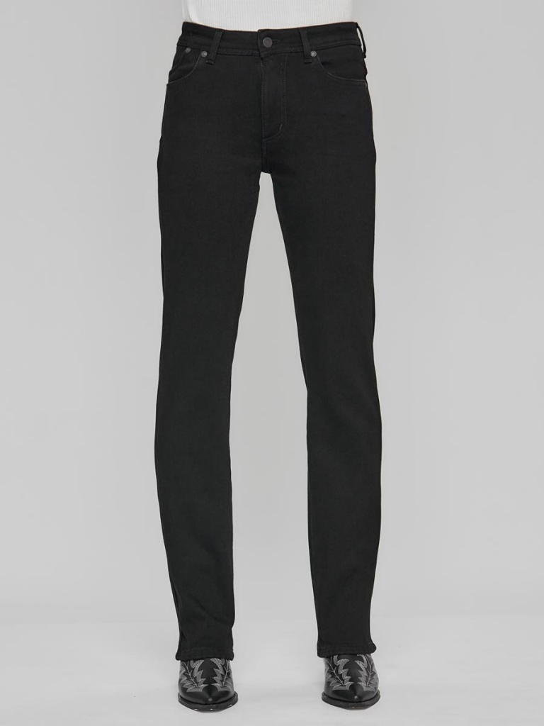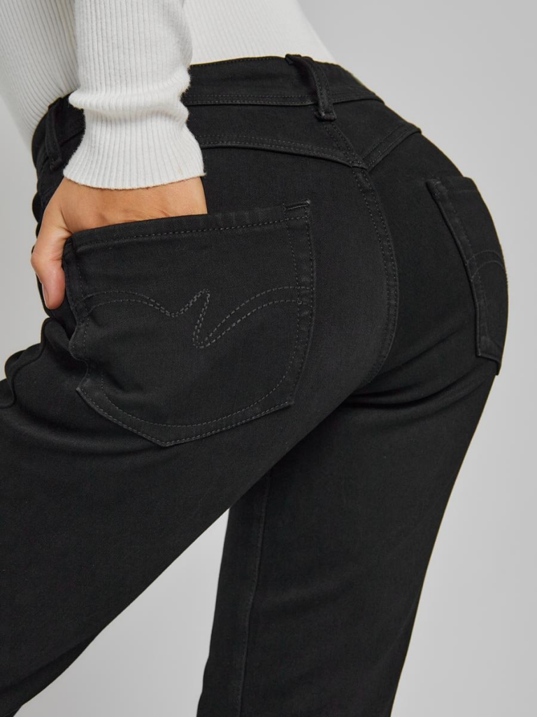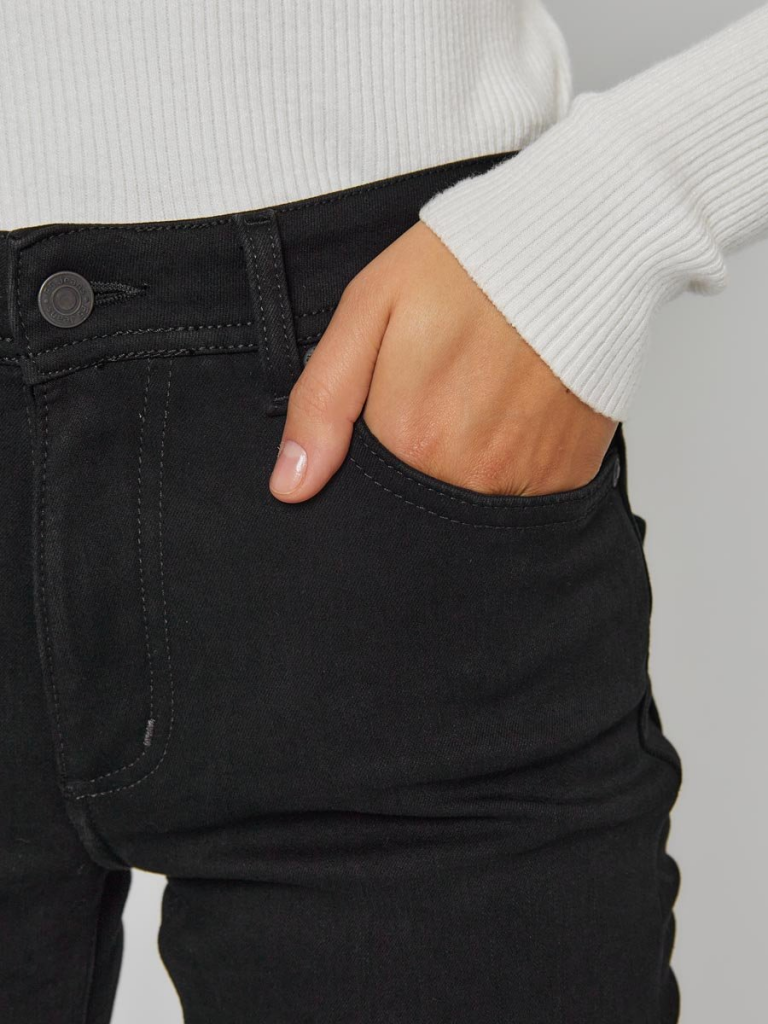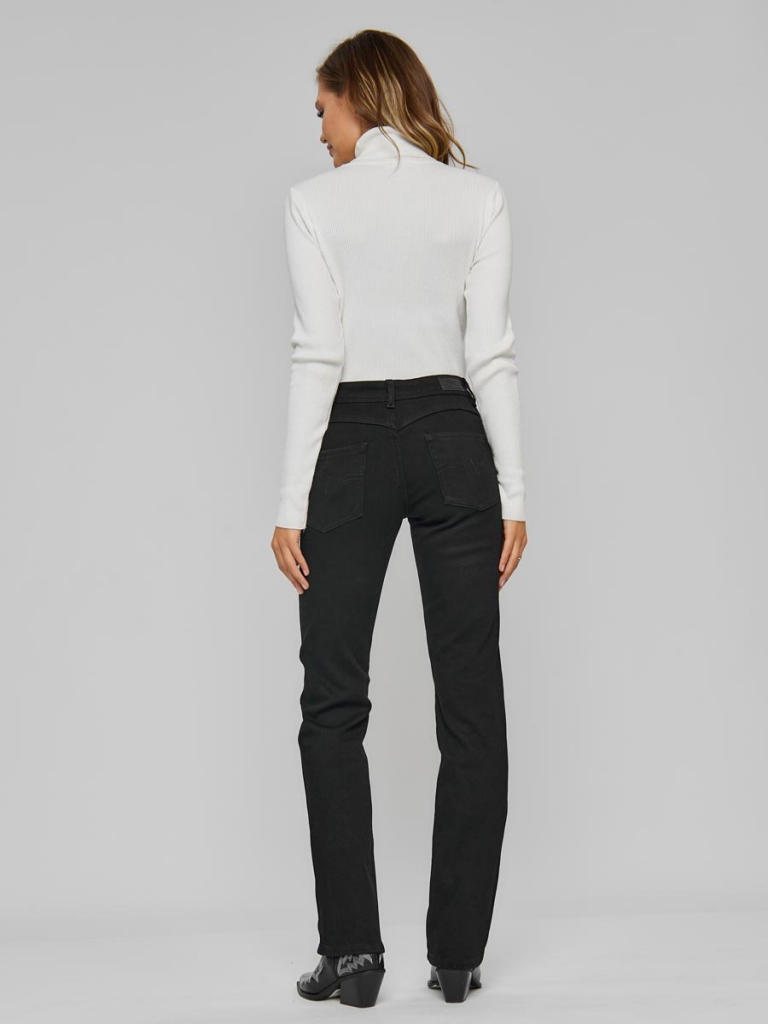 Женские классические утепленные джинсы с посадкой Regular fit (полуоблегающие по бедру), прямые к низу от колена. Высокая талия. Для улучшения посадки по талии сделан подкройной пояс из 2-х частей. Выполнены из утепленной слабоэластичной ткани Black denim comfort stretch, к изнаночной ткани прикреплена дополнительная трикотажная ткань (флис) с мягким, шелковистым и приятным на ощупь ворсом. Темная стирка со слабовыраженными потёртостями и "усами" спереди и потёртостями сзади. Параметры указаны для размера 28. Длина внутреннего шва для роста 32 - 82, 0 см.