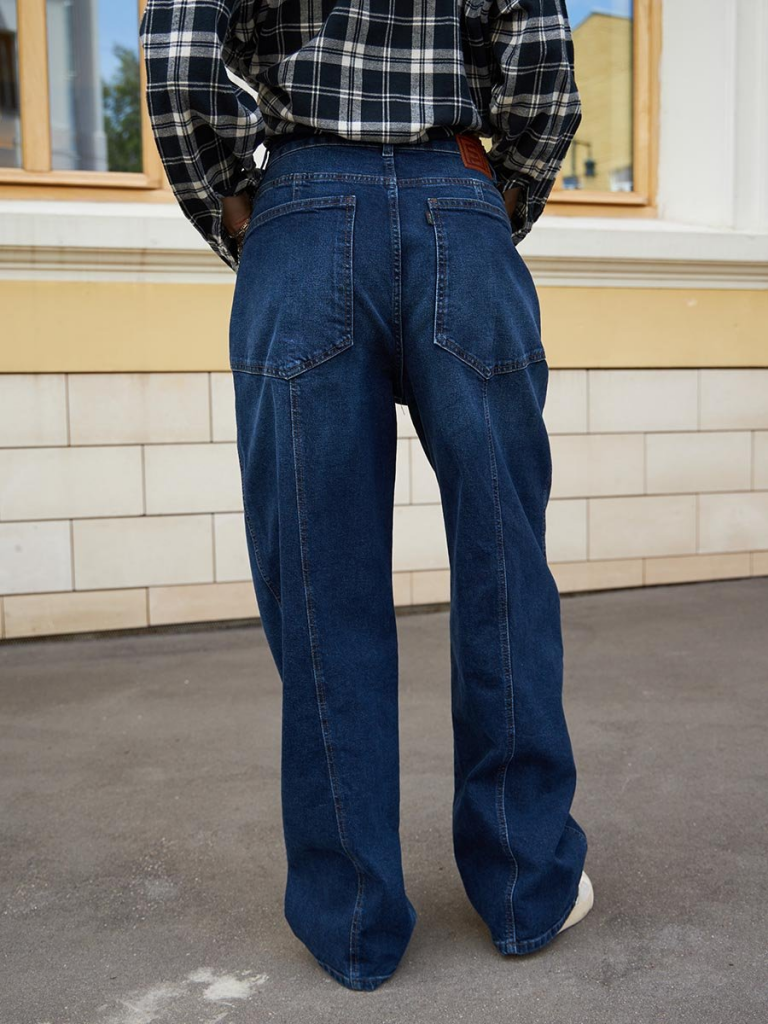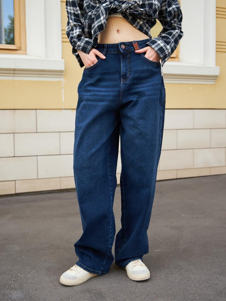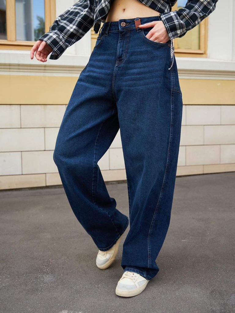 Обновите свой образ трендовыми женскими джинсами Baggy Fit! Эта модель - не просто джинсы, это смелый эксперимент с кроем и силуэтом. Baggy Fit на пике популярности! Нестандартный силуэт с смещенным вперед боковым швом и дополнительными швами сзади создают необычный, но узнаваемый мешковатый стиль. Суперширокие задние карманы визуально добавляют объема бедрам, подчеркивая дерзкий силуэт модели. Высокая талия и широкие штанины в плавно сужающиеся к низу обеспечивает комфорт создавая при этом современный элегантный силуэт. Джинсы абсолютно не сковывают движений и гарантируют комфорт на весь день. Темная стирка "stone wash"это сочетание старых традиций с новыми веяниями в посадке и крое. Уникальный дизайн и крой выделит вас из толпы. Добавьте дерзкую ноту в свой стиль с этими необычными джинсами!