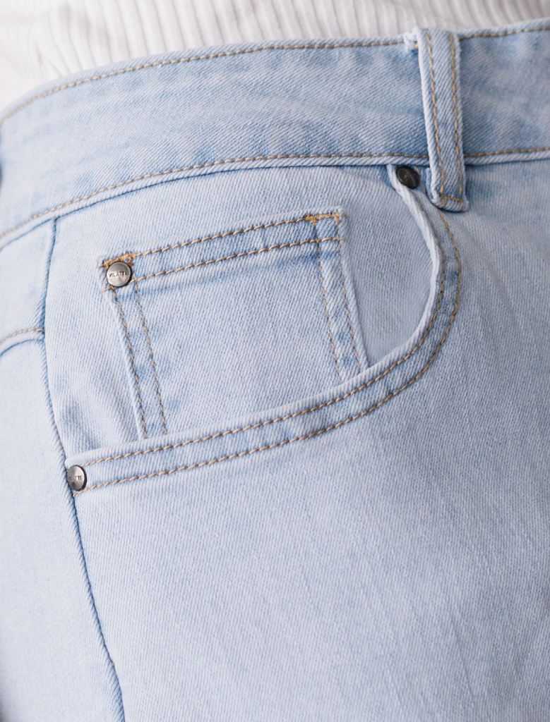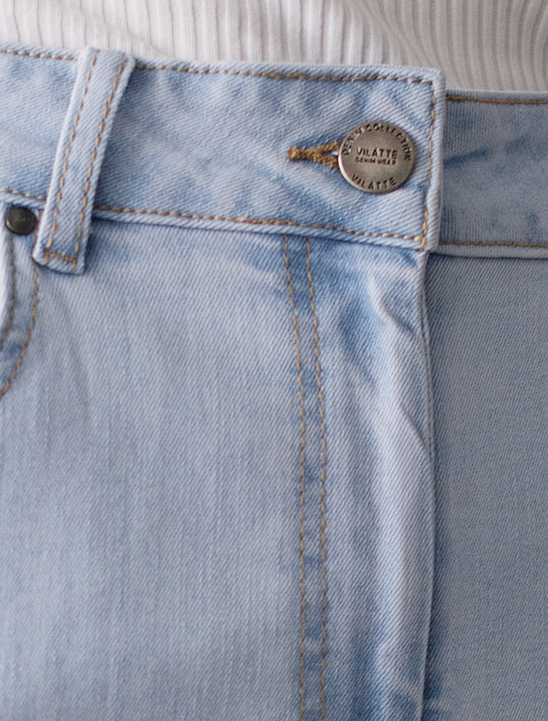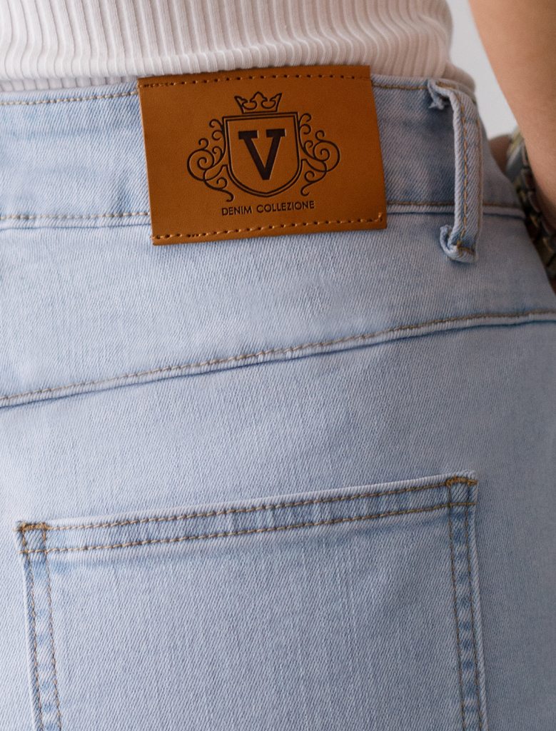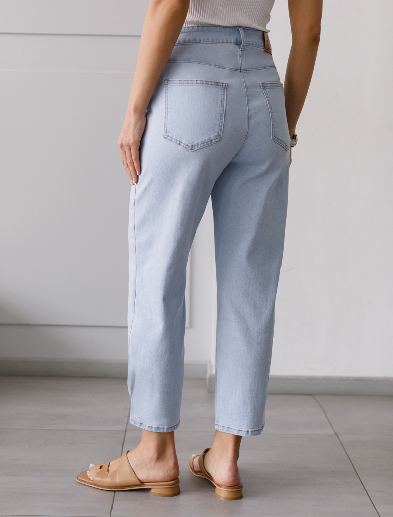 Джинсы с легкой стиркой выполнены из эластичного денима. Укороченная модель с пятью карманами и брендированным патчем на поясе. За счет эластана изделие хорошо тянется и гарантирует комфорт и формоустойчивость. Подходит для любой фигуры.