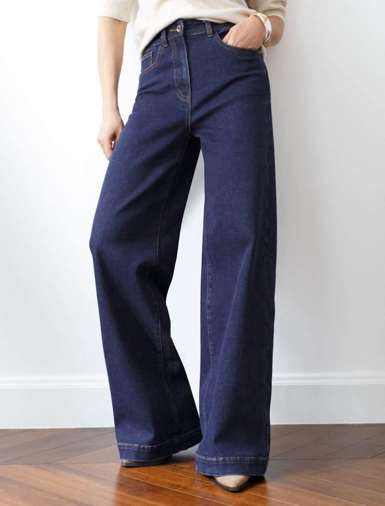 Стильные джинсы трубы глубокого темно-синего цвета прямого кроя выполнены из эластичного денима, что делает их особенно удобными для повседневной носки. Декоративная стирка добавляет современный акцент и подчеркивает современный дизайн. Джинсы правильного кроя визуально вытягивают силуэт, благодаря эластану в составе аккуратно садятся на любую фигуру, подчеркивая достоинства, а обеспечивают максимальный комфорт в течение дня, не сковывая движения. Широкая размерная линейка подходит для разных типов фигур: свободные джинсы комфортны как для обладательниц пышных форм, так и для худеньких. Вы сможете подабрать джинсы на низкий или высокий рост. Плотные джинсы идеально держат форму даже при активном движении и не вытягиваются после долгой носки. Качественная надежная фурнитураи практичные карманы - делают эти джинсы премиальными. Широкий подгиб добавляет актуальности — такой тренд отлично сочетается как с обувью на каблуке, так и на плоском ходу. Благодаря универсальному дизайну джинсы легко комбинируется с ра