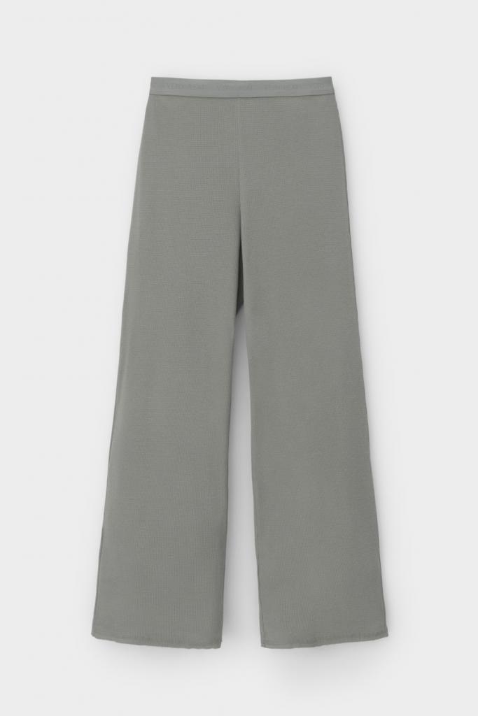 Комплект из объемного трикотажа с добавлением эластичных волокон. Свободный силуэт, мягкий пояс и отсутствие боковых швов на брюках обеспечат комфорт во время сна и отдыха.