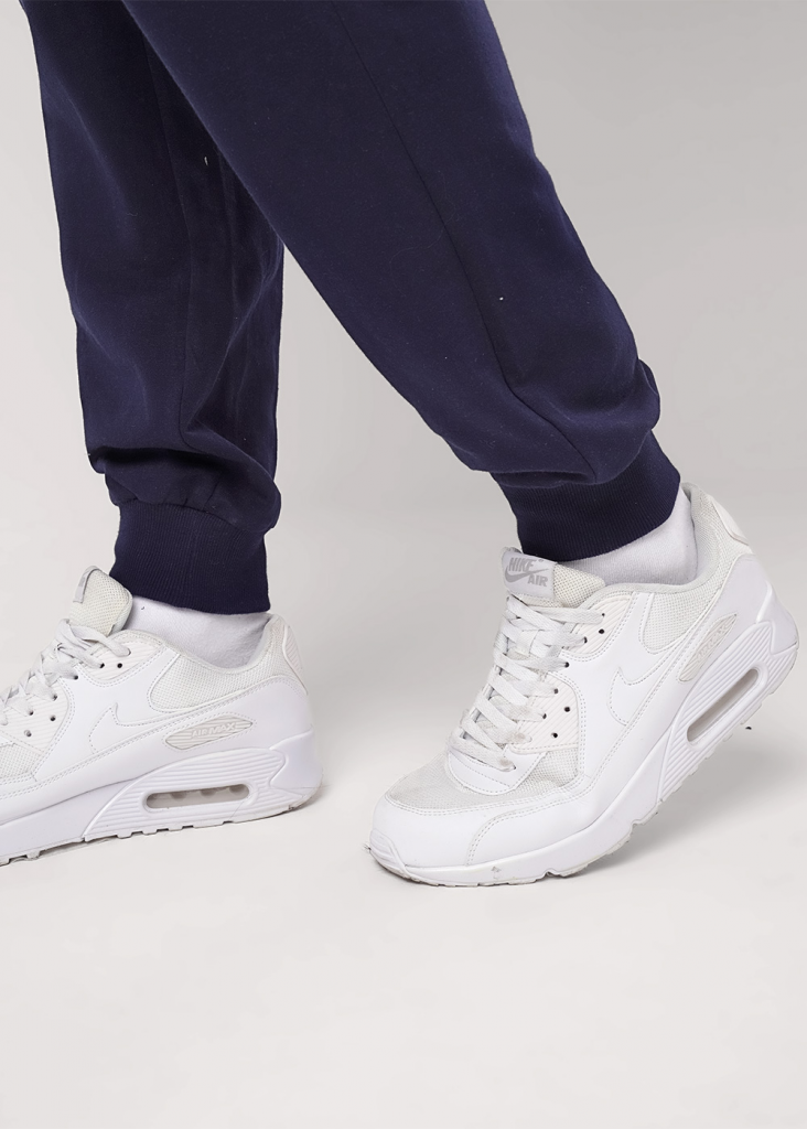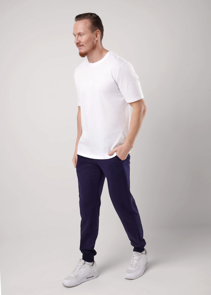 Брюки на манжетах с отрезным поясом из кашкорсе, двумя карманами в боковых швах.