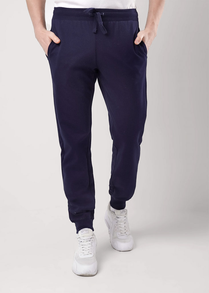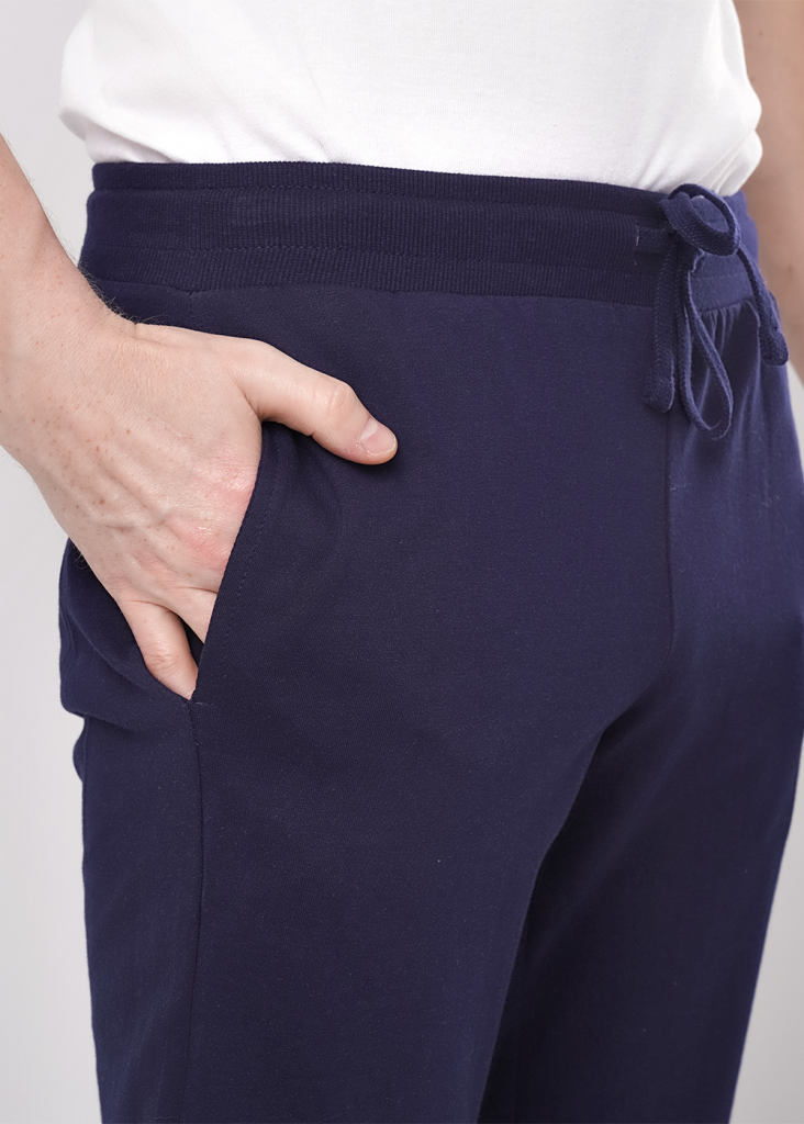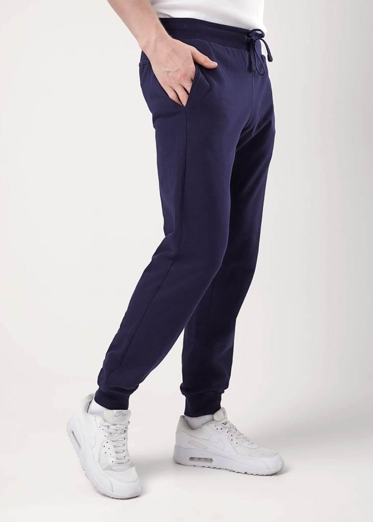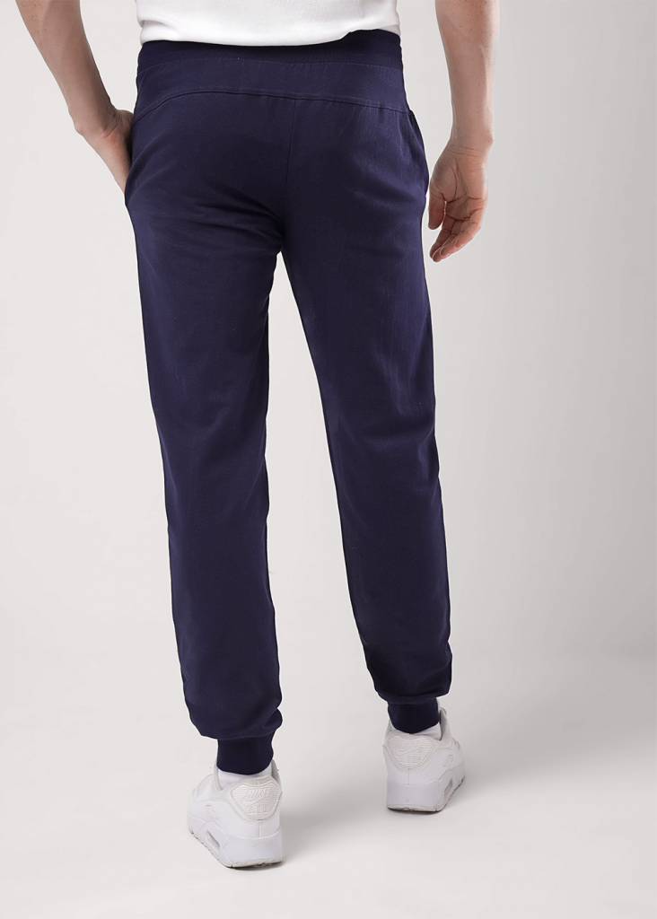 Брюки на манжетах с отрезным поясом из кашкорсе, двумя карманами в боковых швах.