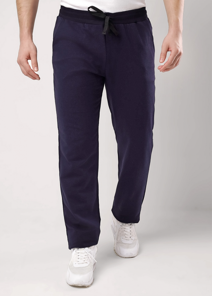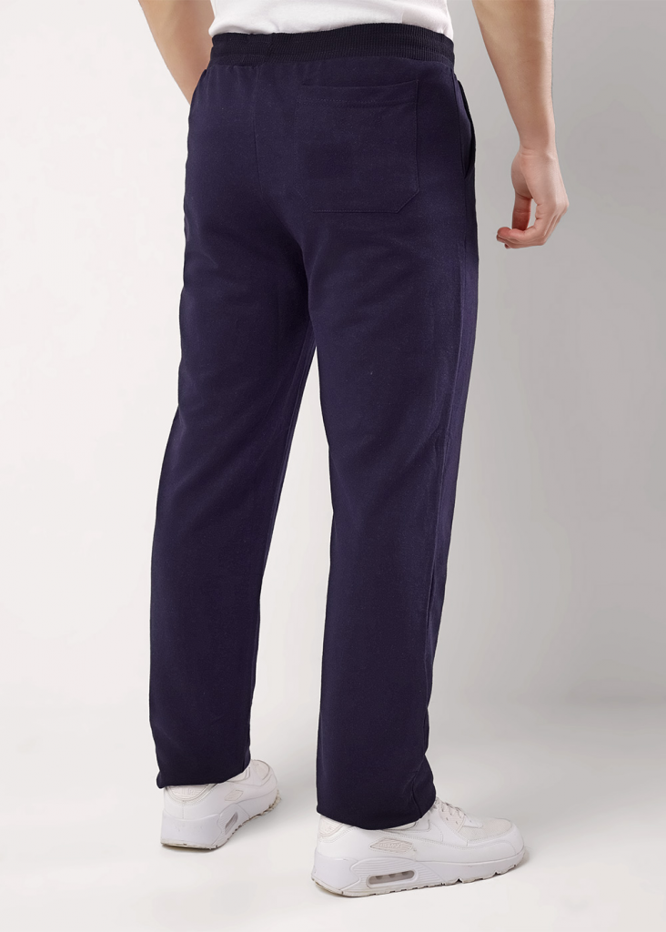 Брюки с отрезным поясом из кашкорсе, двумя карманами в боковых швах и одним накладным карманом сзади.