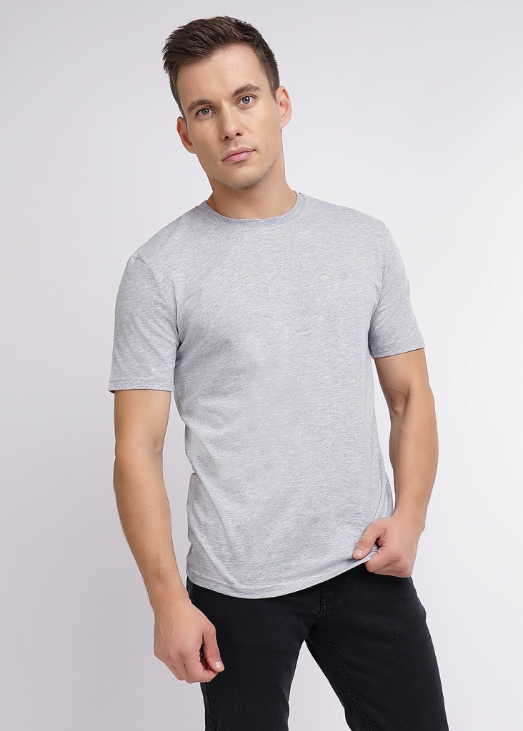 Фуфайка с коротким рукавом среднего объема, круглым вырезом горловины, которая оформлена обтачкой из рибаны.