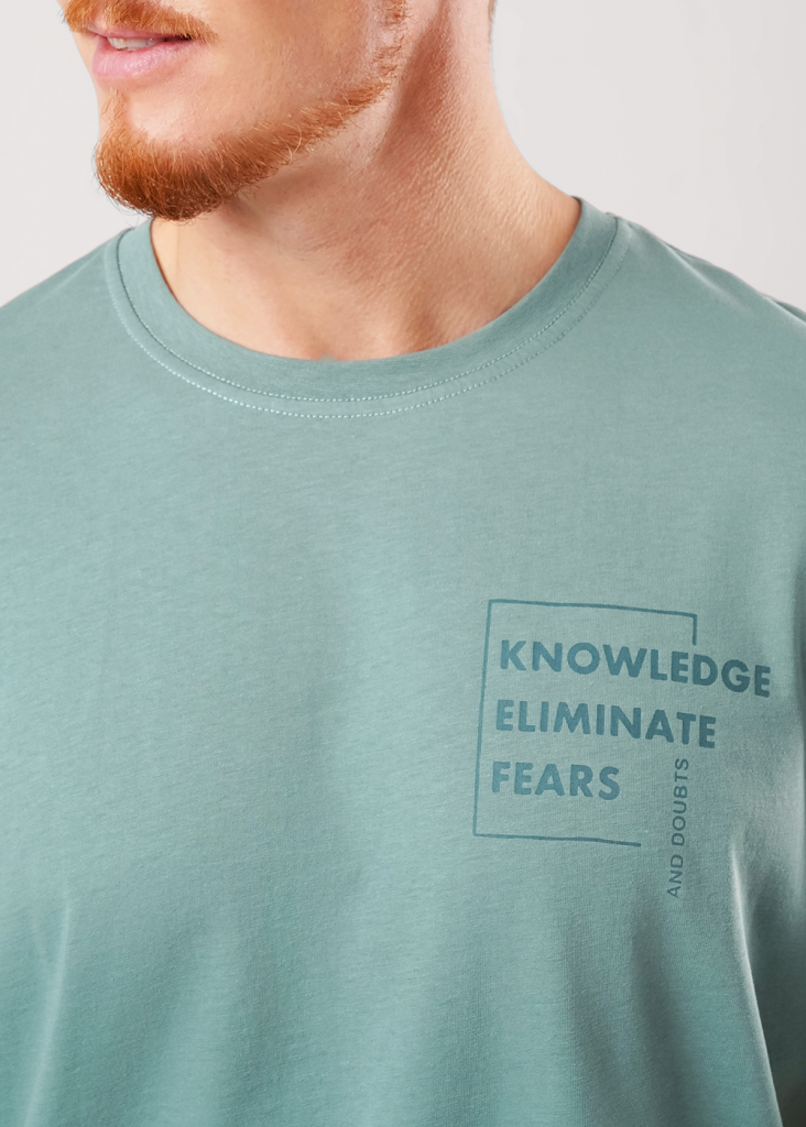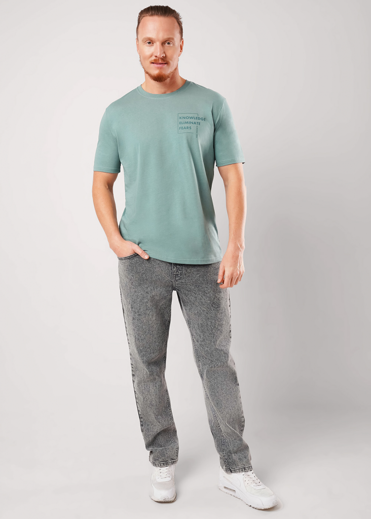 Фуфайка с коротким рукавом среднего объема, круглый вырез, горловина оформлена обтачкой из рибаны. Дополнена оригинальным принтом.