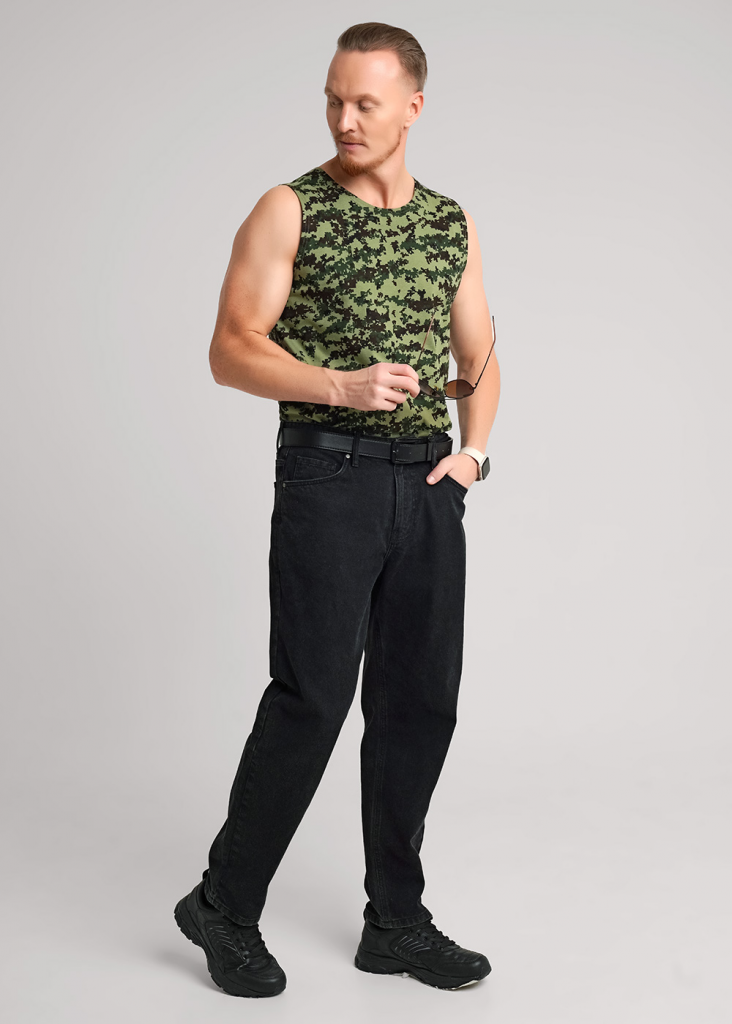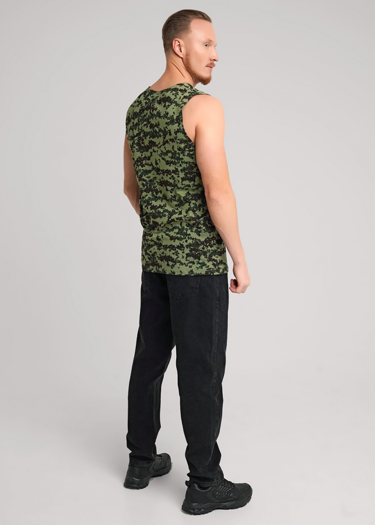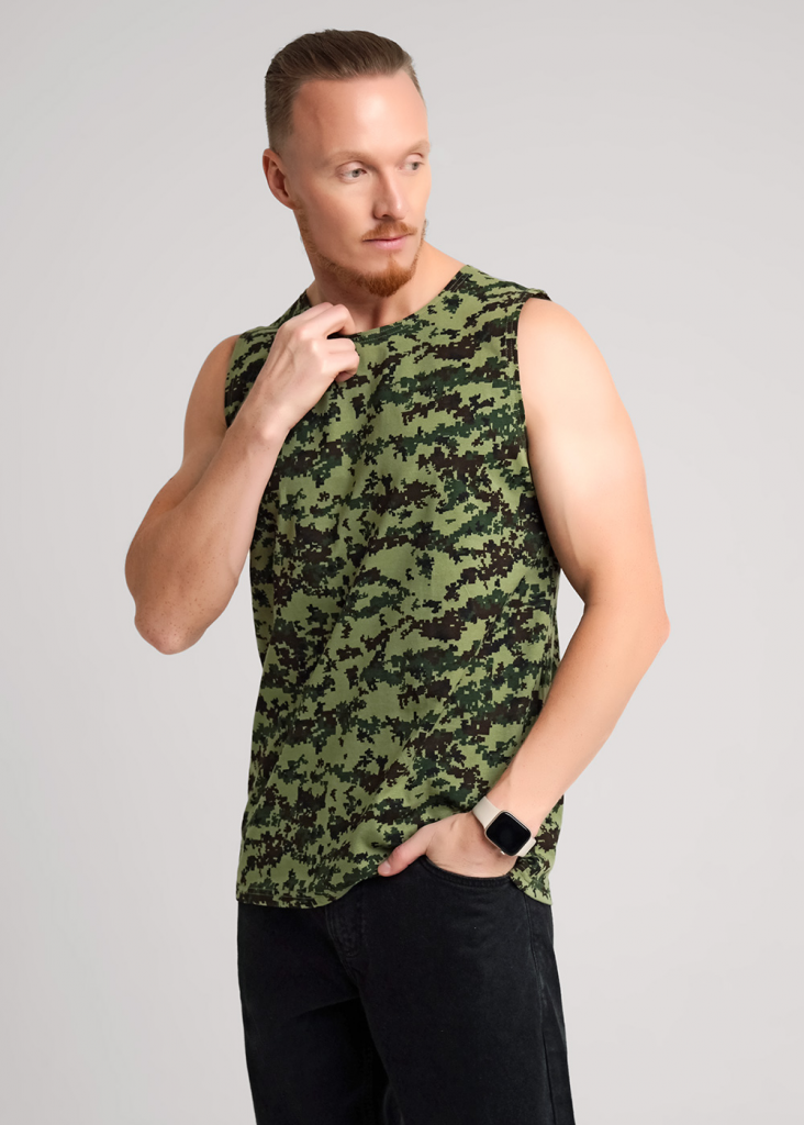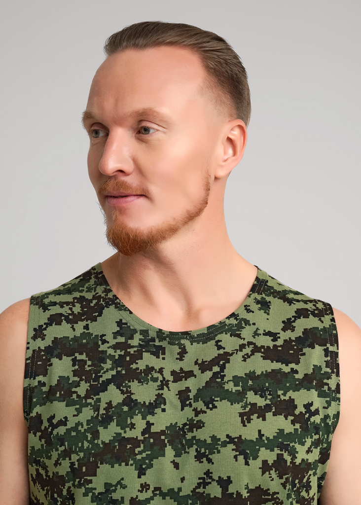 майка из 100% хлопка с плечем средней ширины, круглым вырезом горловины. Плотность полотна: 140 гр/м2
