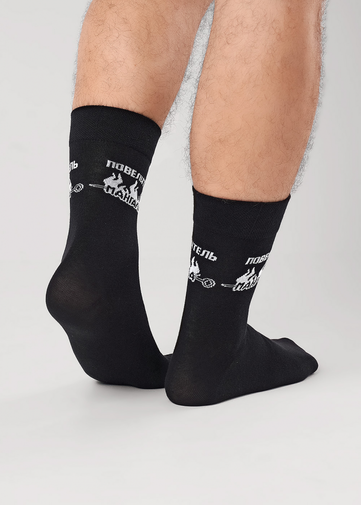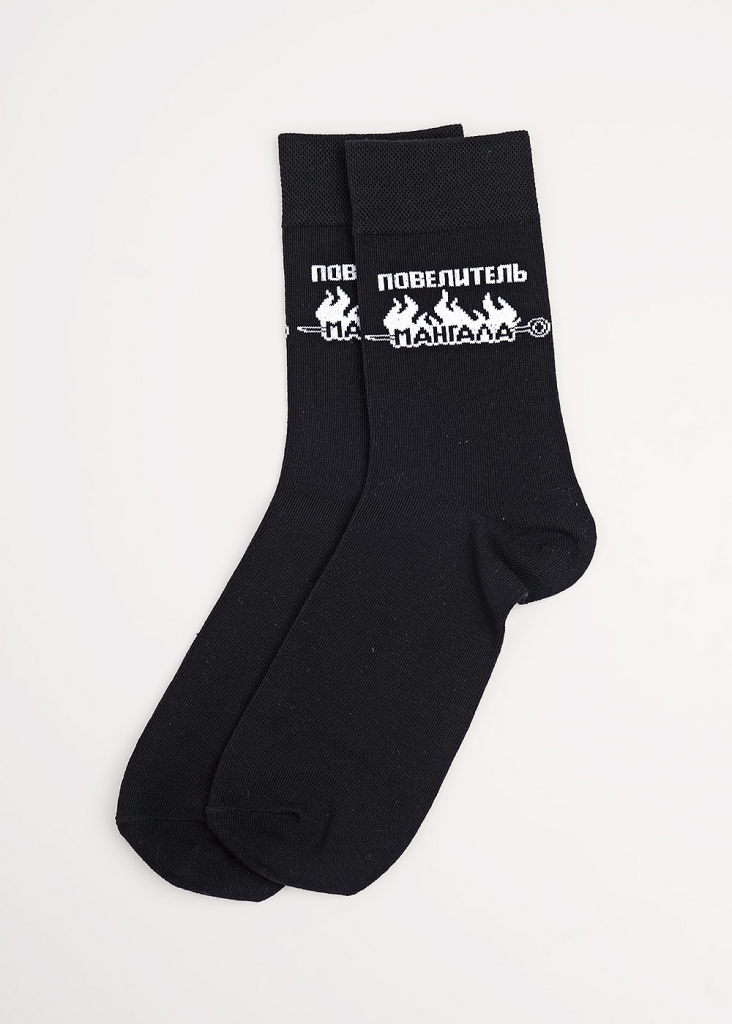 Мужские носки с рисунком и надписью "Повелитель мангала".
