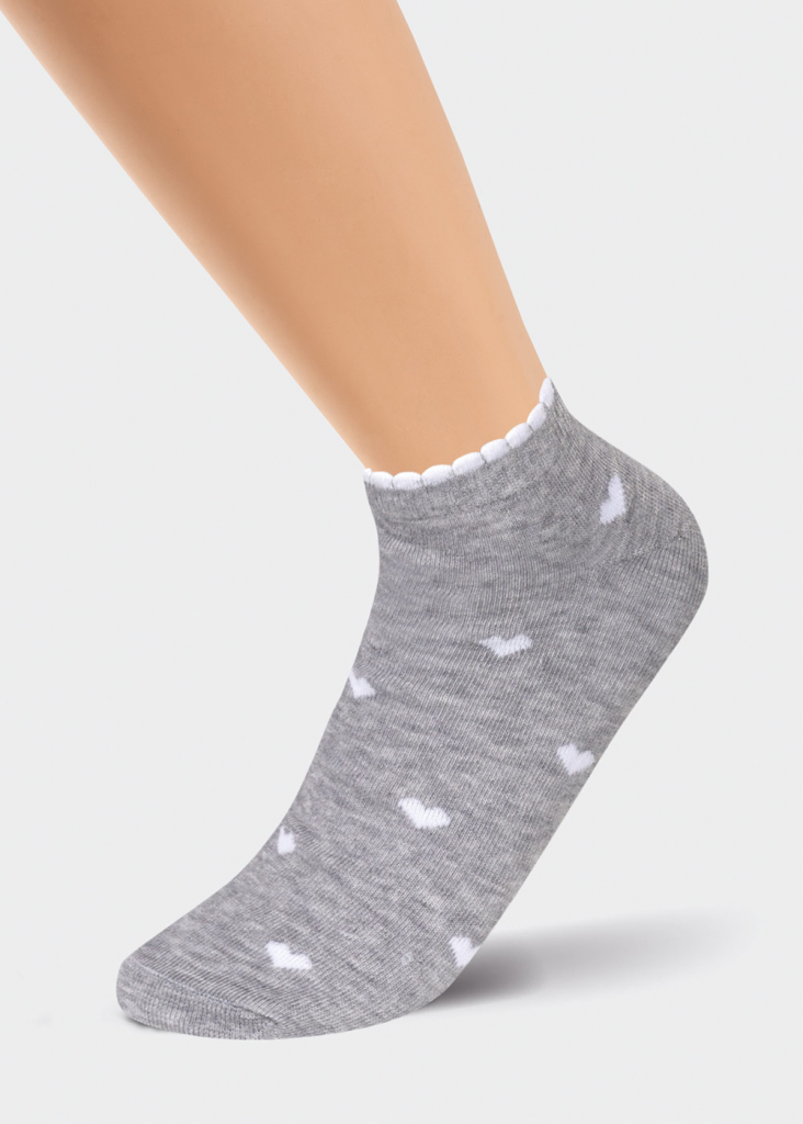 носки женские уороченные с резинкой "пикот" с сердечками