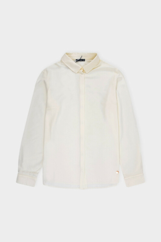 Блузка классического прямого кроя с длинными рукавами на манжетах и застежкой на планку с пуговицами.