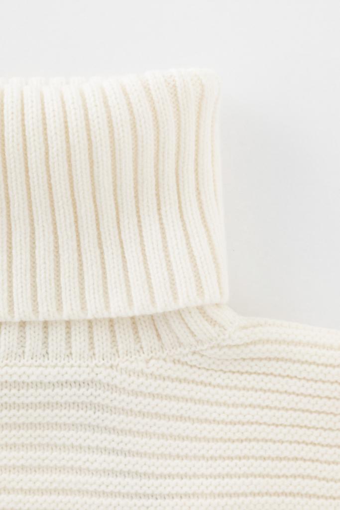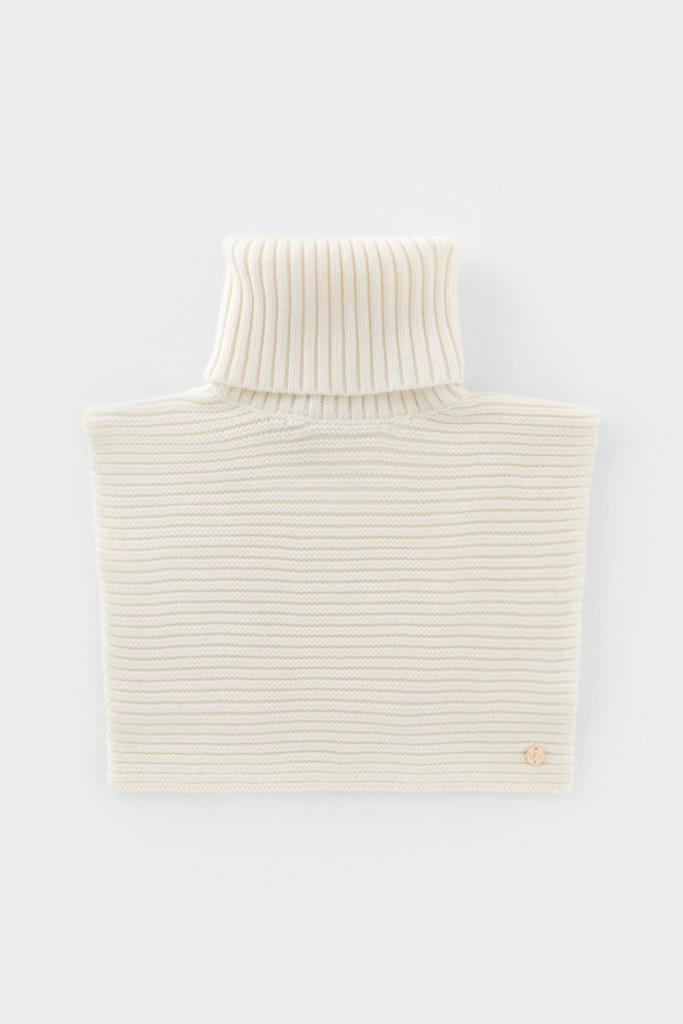 Уютная вязаная манишка с высоким воротником из шерсти и акрила. Шерсть в составе хорошо удерживает тепло, а волокна акрила делают изделие мягким и предотвращают деформацию и появление катышек. Лаконичный крой хорошо сочетается с верхней одеждой.
