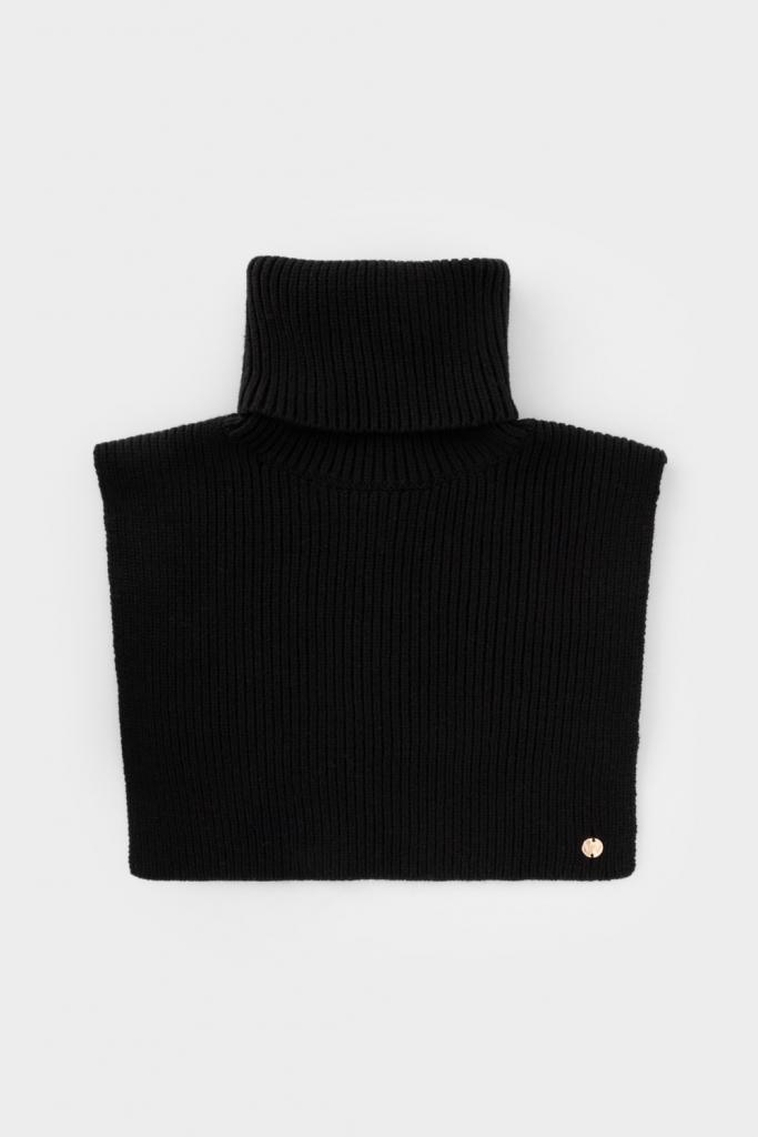 Уютная вязаная манишка с высоким воротником из шерсти и акрила. Шерсть в составе хорошо удерживает тепло, а волокна акрила делают изделие мягким и предотвращают деформацию и появление катышек. Лаконичный крой хорошо сочетается с верхней одеждой.