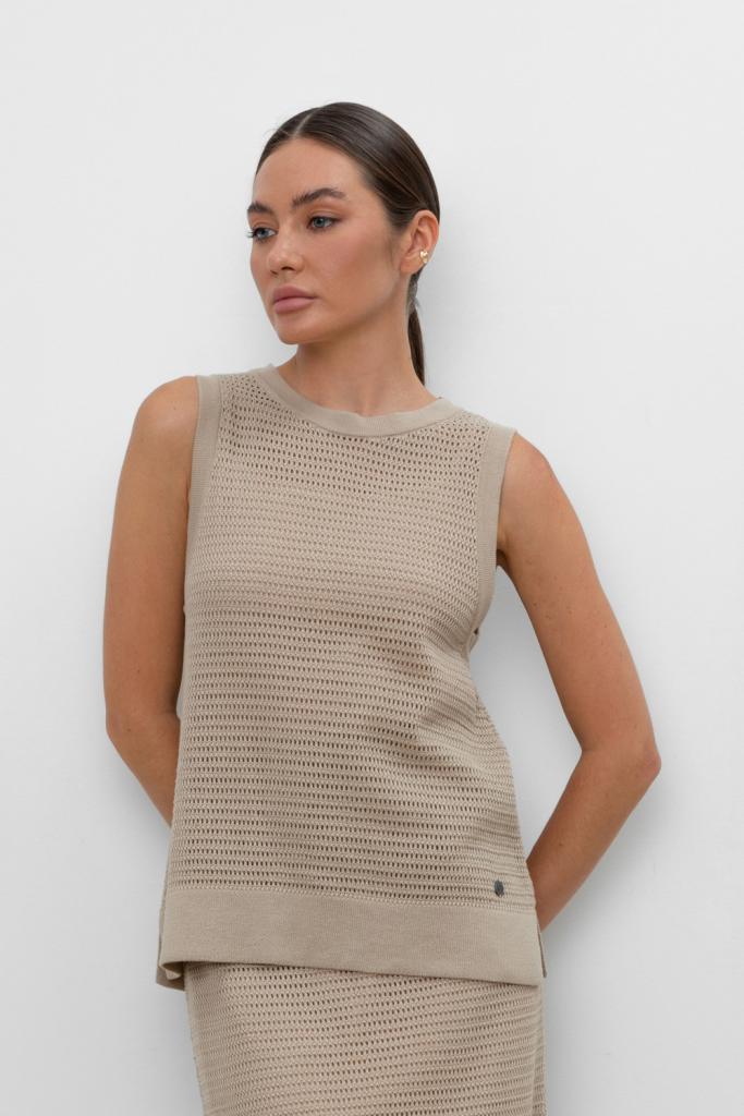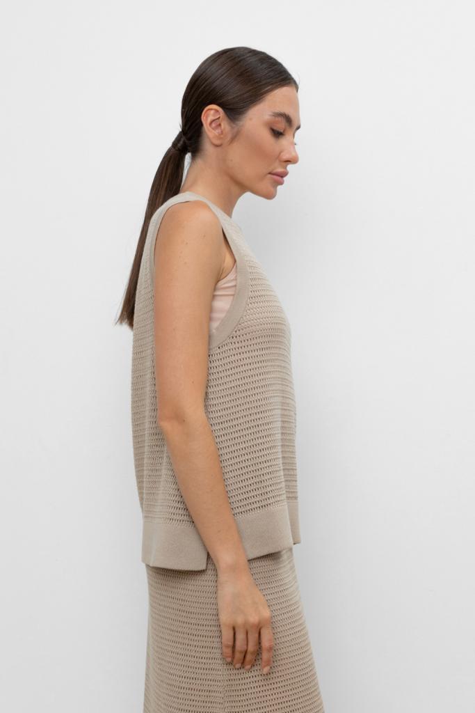 Вязаная ажурная майка. Состав 50% хлопок, 50% акрил. Благодаря акрилу в составе изделие не пилингуется.