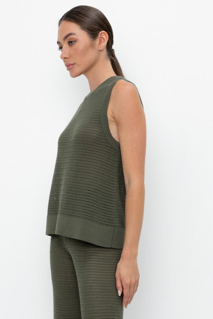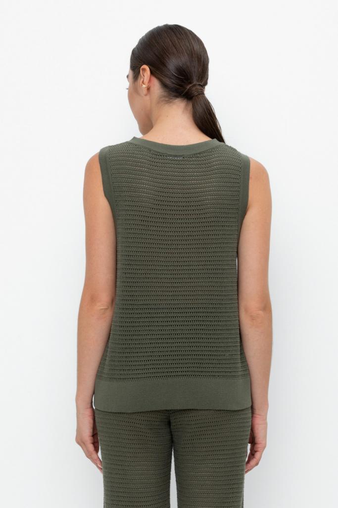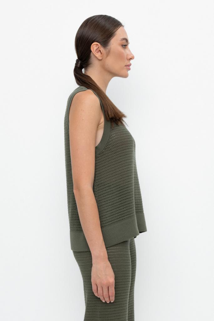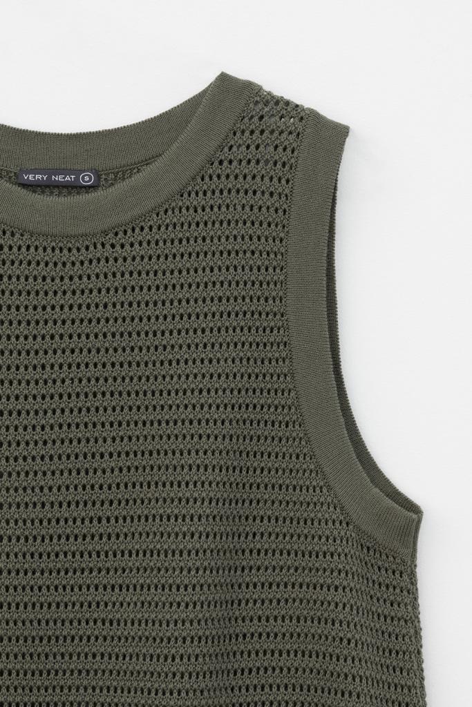 Вязаная ажурная майка. Состав 50% хлопок, 50% акрил. Благодаря акрилу в составе изделие не пилингуется.