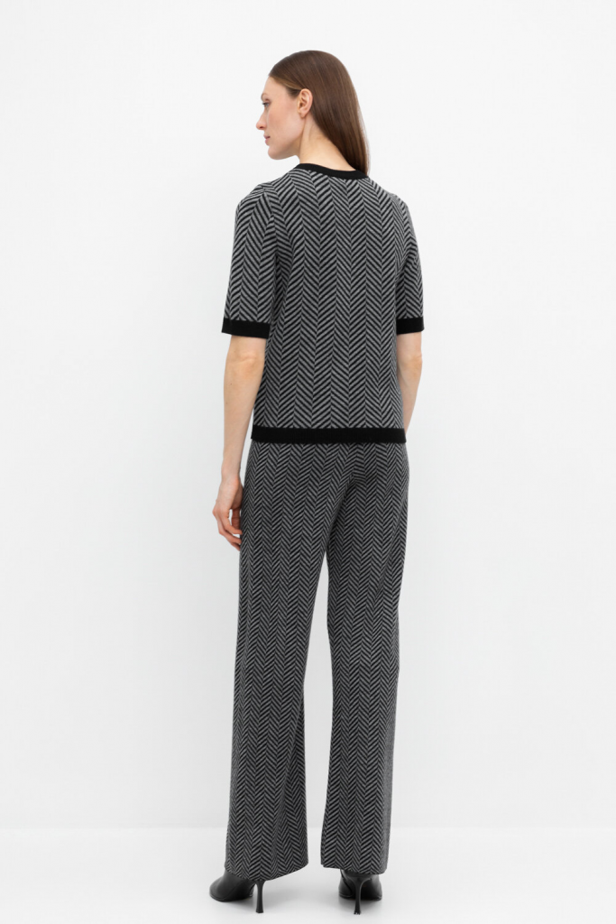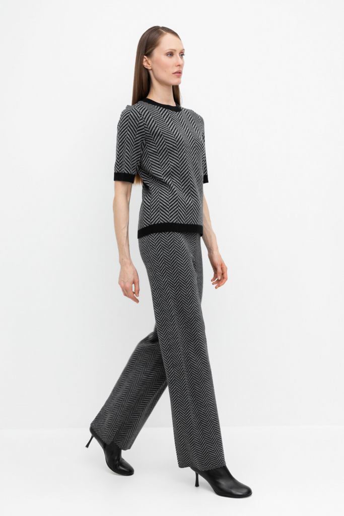 Удобные вязаные брюки прямого силуэта. Связаны жаккардом из мягкой полушерстяной пряжи. В составе 50% шерсти и 50% акрила. Шерсть в составе сохраняет тепло, а благодаря волокнам акрила изделие мягкое и дольше сохраняет форму. Плотная фактура вязания согревает и сохраняет форму во время носки.