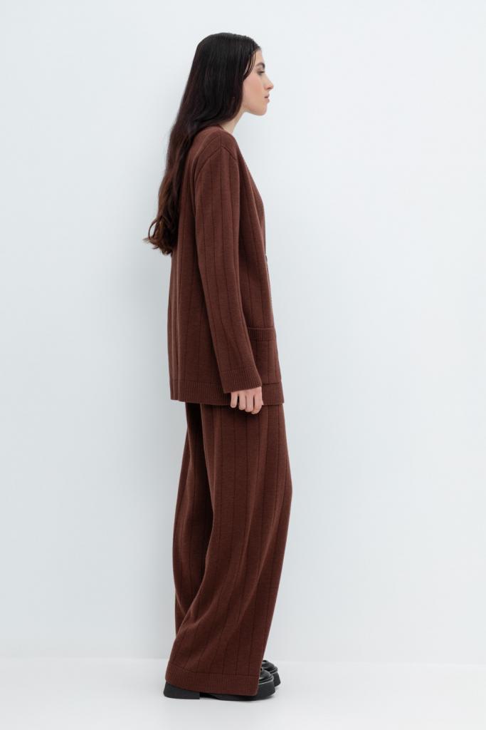 Удобные вязаные брюки прямого силуэта. Выполнены из мягкой полушерстяной пряжи. Шерсть мериноса в составе сохраняет тепло, а благодаря волокнам акрила изделие мягкое и дольше сохраняет форму.