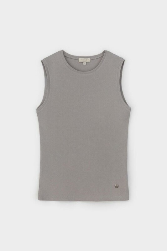 Базовым элементом гардероба является топ из эластичного трикотажа в рубчик. Широкое плечо и высокий вырез делают изделие комфортным и универсальным в носке.