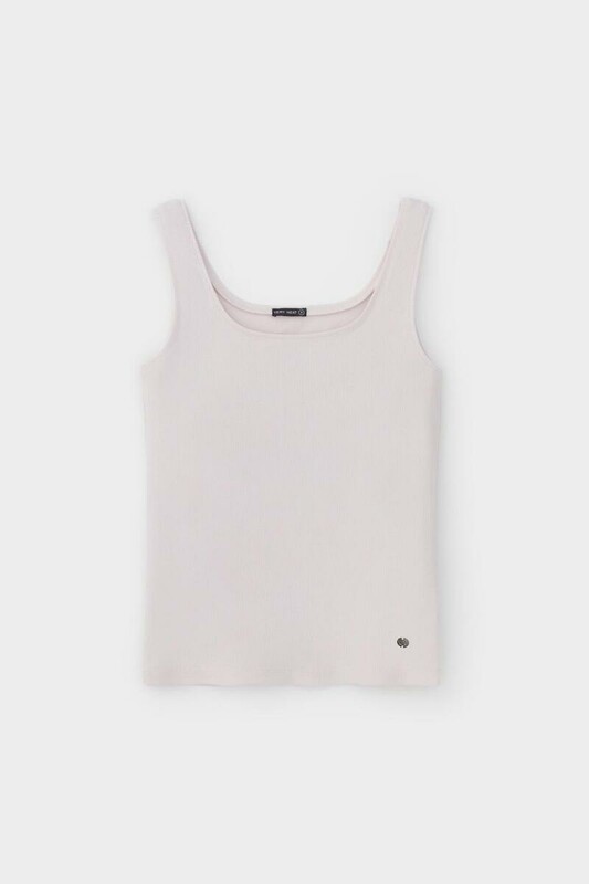 Классическим элементом гардероба является базовый топ в рубчик. Узкие бретели и глубокий вырез делают изделие комфортным в носке и универсальным в повседневной жизни.