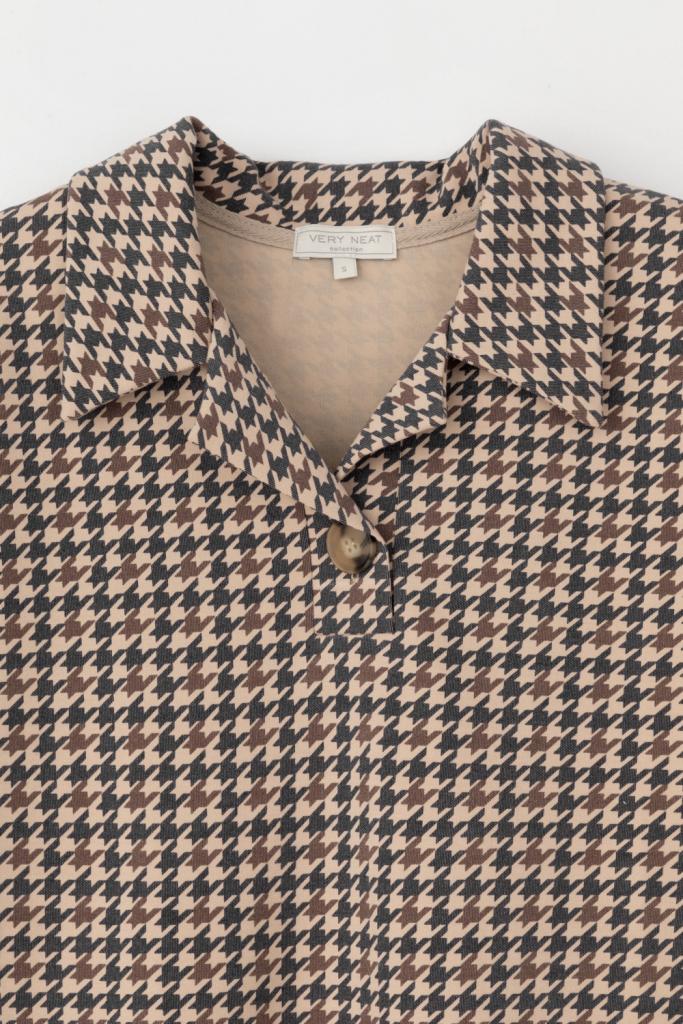 Джемпер поло с короткими рукавами из интерлока с V-образным вырезом и декоративной пуговицей.