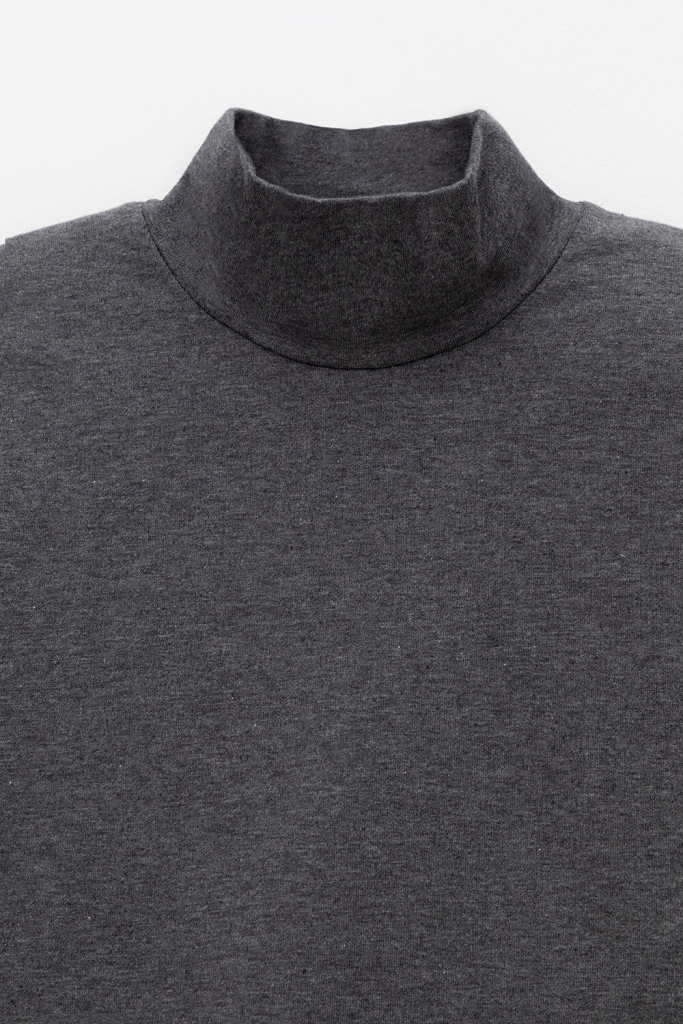 Базовый джемпер с короткими рукавами и воротником-стойкой из плотного однотонного трикотажа супрем с добавлением спандекса.