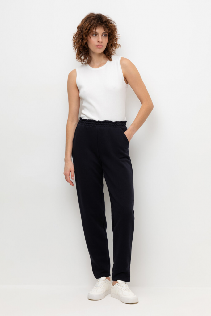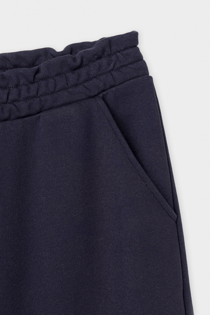 Брюки прямого кроя с боковыми карманами из петельчатого футера трехнитки. Гладкий и плотный материал на основе хлопка сохраняет форму.