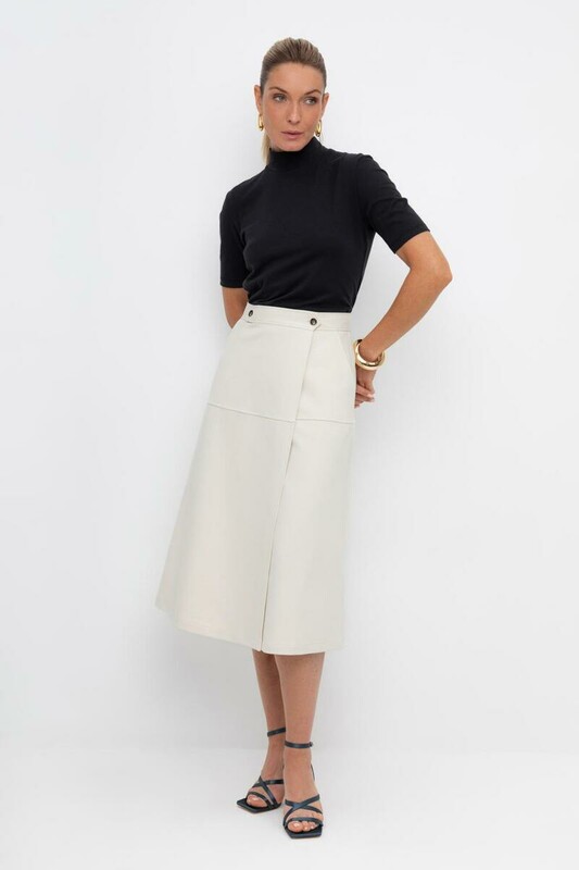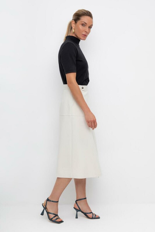 Юбка с акцентной линией талии подчеркивает утонченный силуэт. Длина миди добавляет образу сдержанной классики, делая изделие универсальным для любого случая, а имитации запаха не создает лишний объём. Юбка изготовлена из премиального трикотажа DOUBLE FACE.