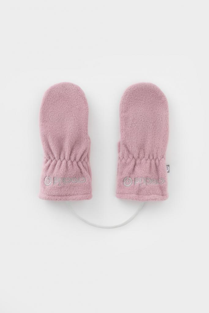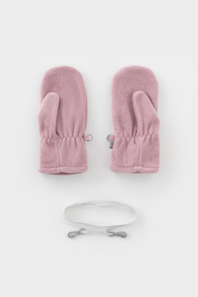 Флисовые варежки детские на шнурке. В области запястья вшита эластичная резинка. Варежки сохраняют цвет и форму после многократных стирок.