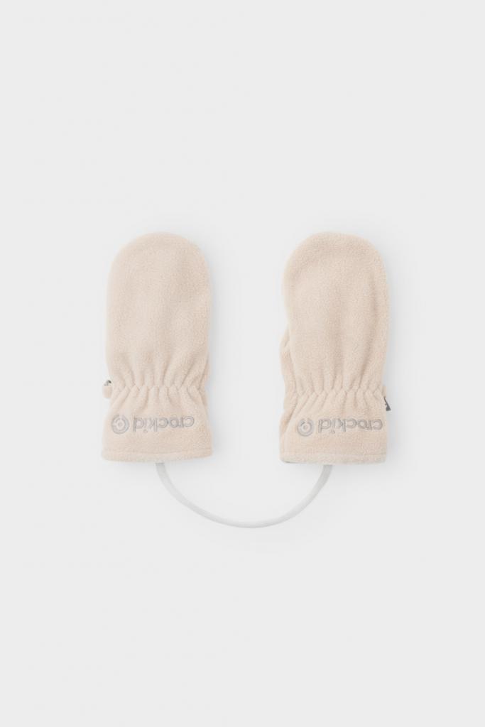 Флисовые варежки детские на шнурке. В области запястья вшита эластичная резинка. Варежки сохраняют цвет и форму после многократных стирок.