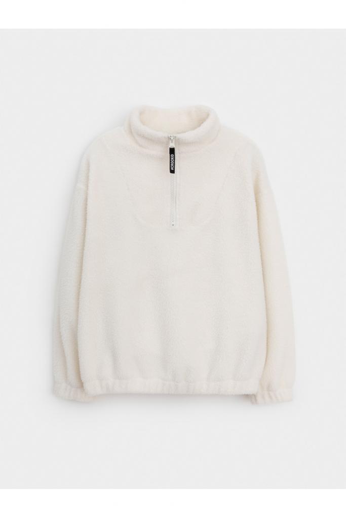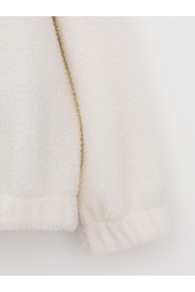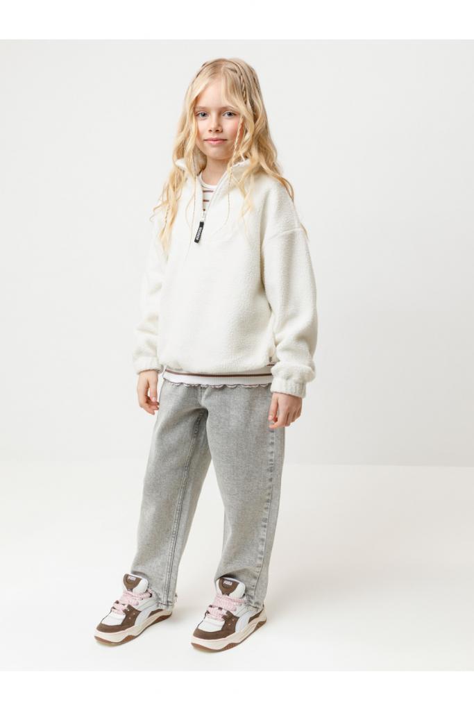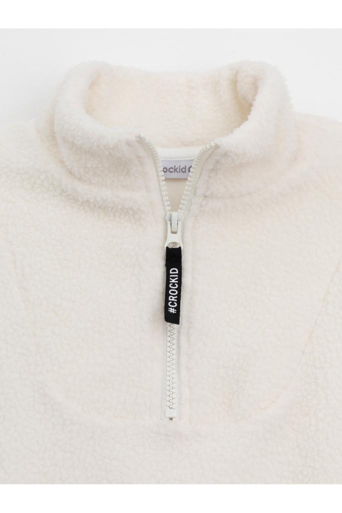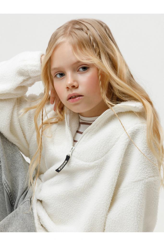 Детская толстовка из флиса. У изделия высокий воротник и застёжка спереди на короткую молнию. Рукава и низ изделия собраны на резинку. Толстовка сохраняет цвет и форму после многократных стирок.