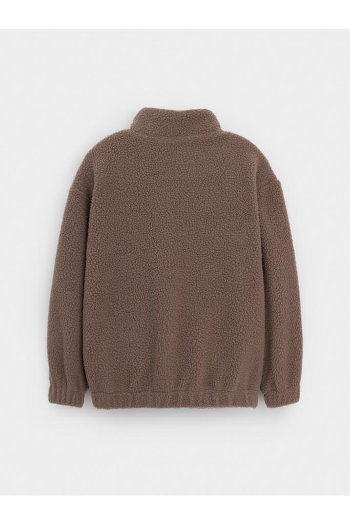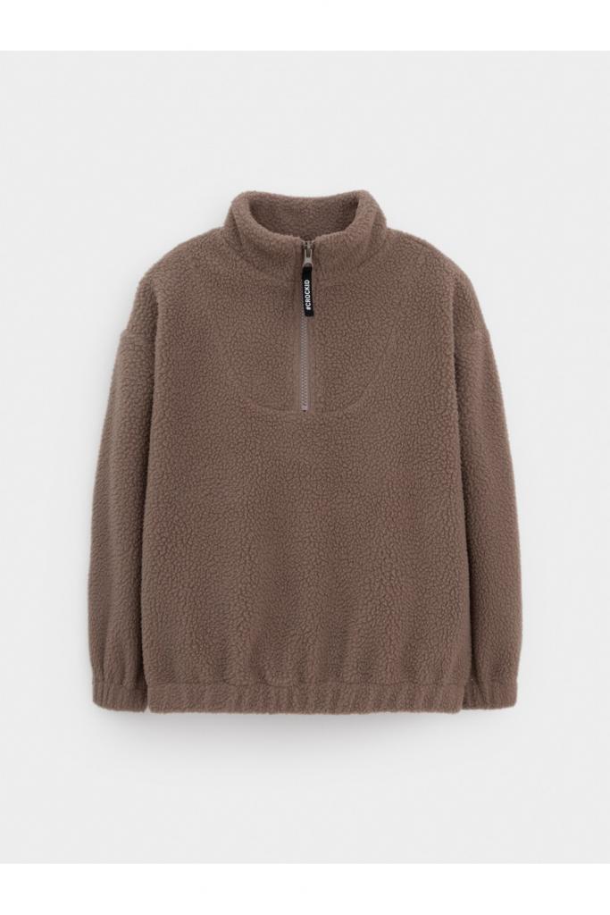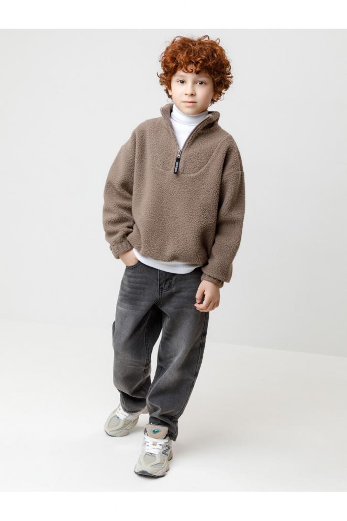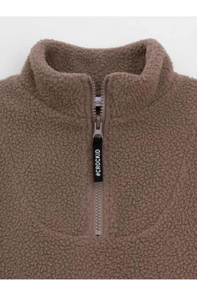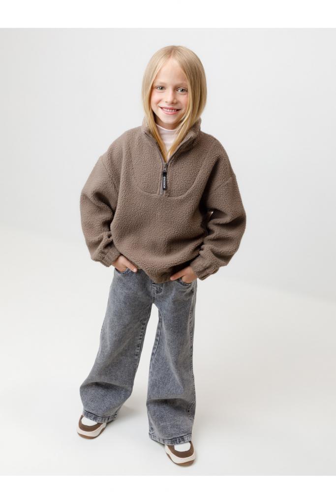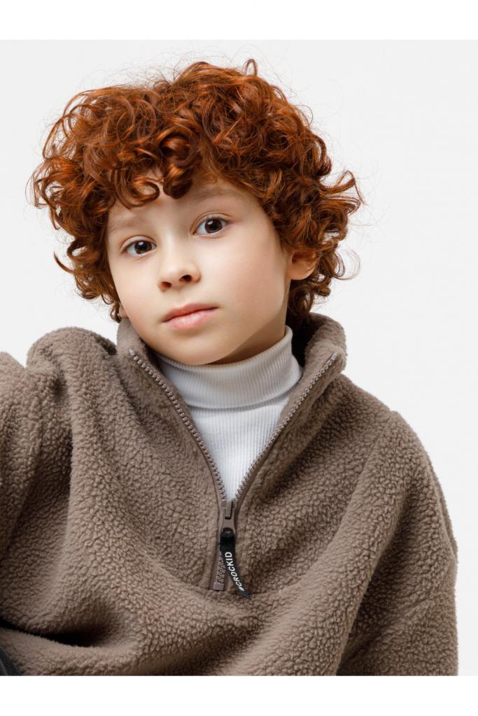 Детская толстовка из флиса. У изделия высокий воротник и застёжка спереди на короткую молнию. Рукава и низ изделия собраны на резинку. Толстовка сохраняет цвет и форму после многократных стирок.