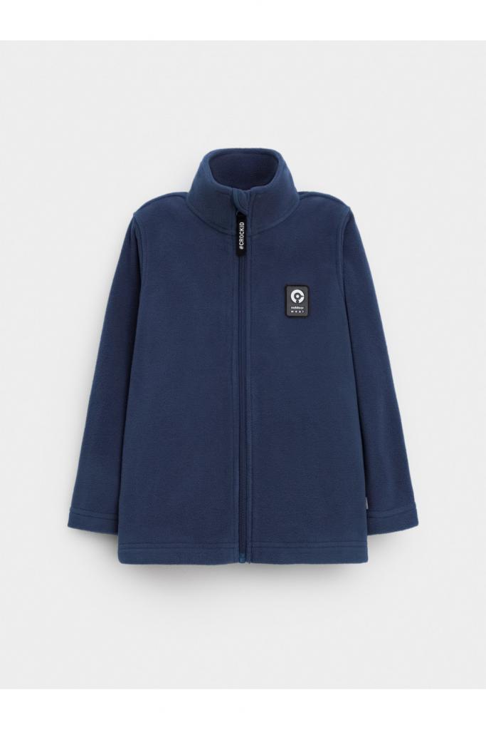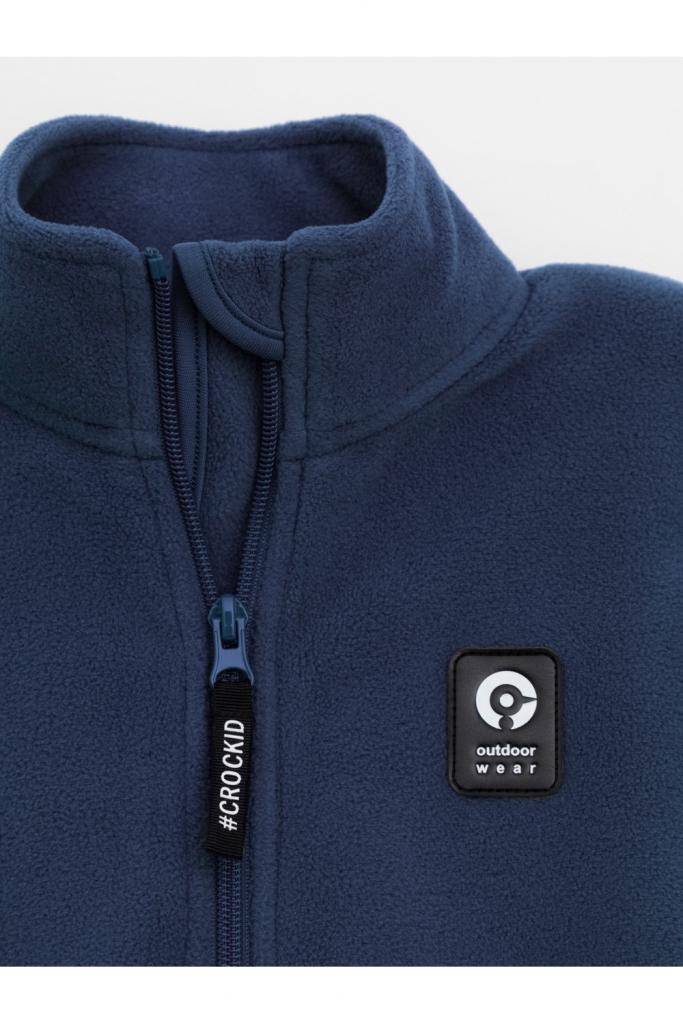 Флисовая куртка для мальчика. У изделия высокий воротник и застёжка на молнию с мягкой защитой шеи и подбородка. По бокам два кармана. Куртка сохраняет цвет и форму после многократных стирок.