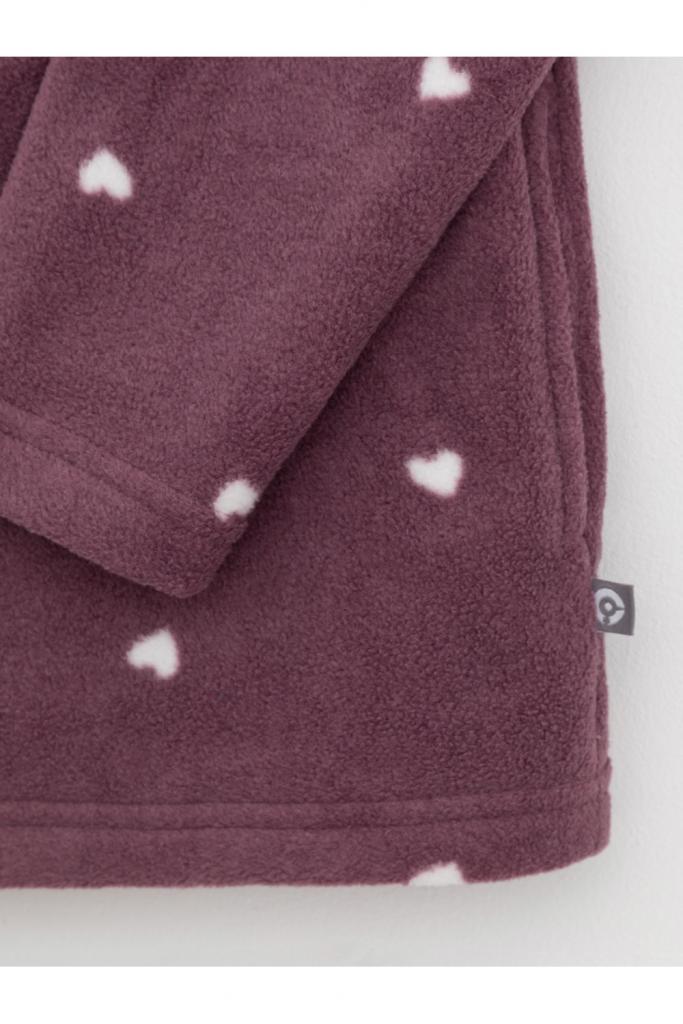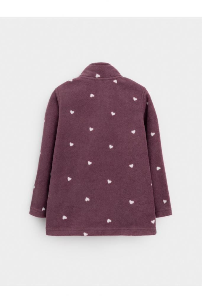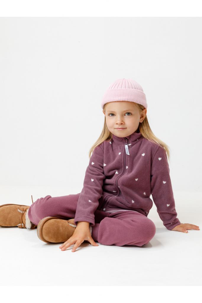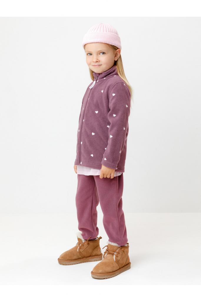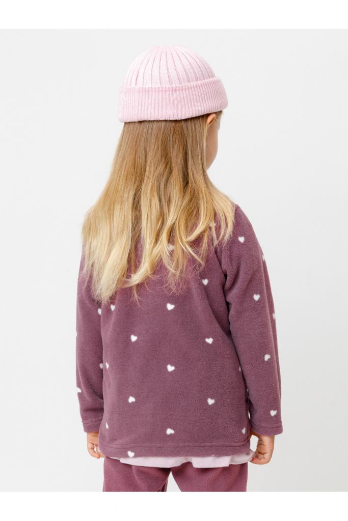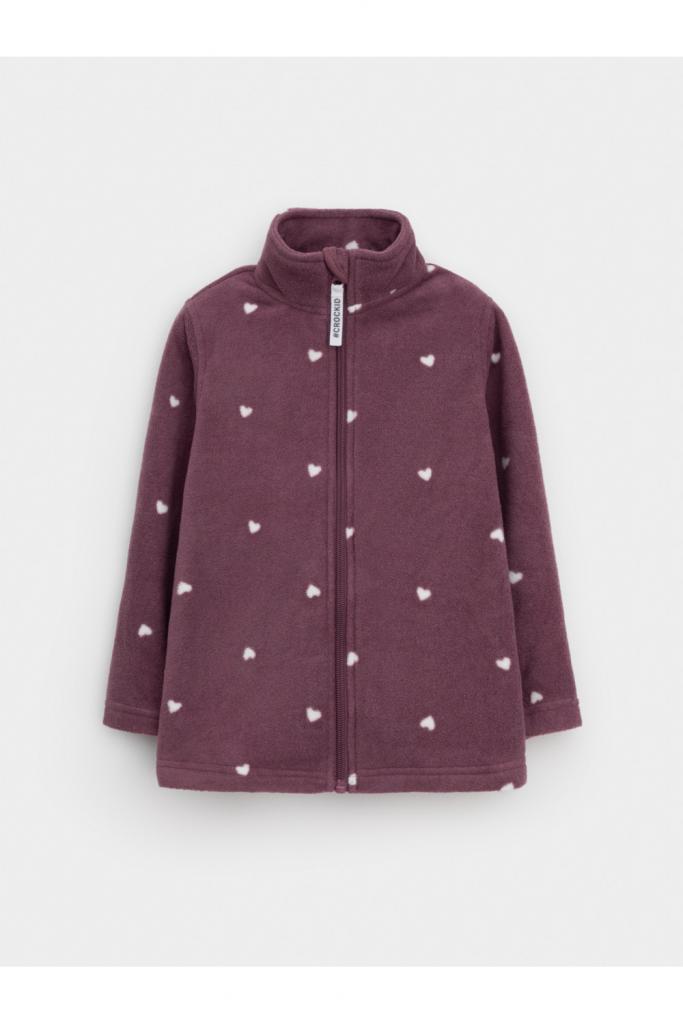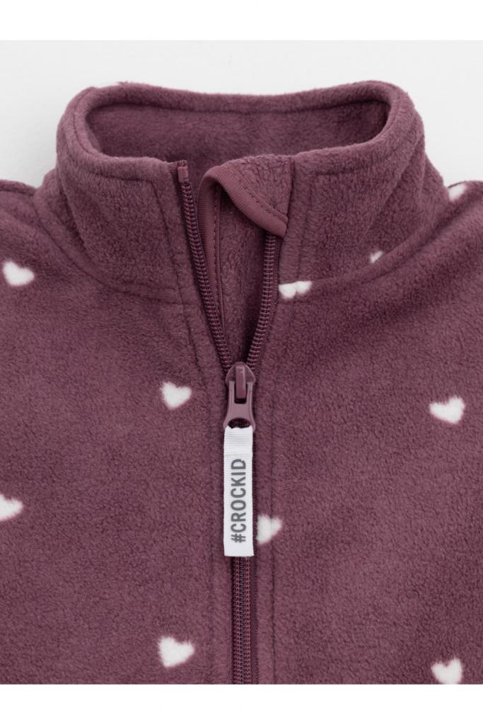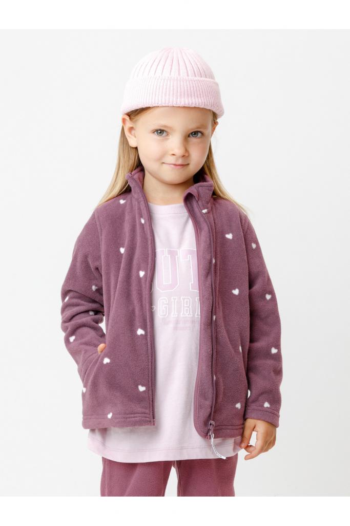 Флисовая куртка для девочки. У изделия высокий воротник и застёжка на молнию с мягкой защитой шеи и подбородка. По бокам два кармана. Оригинальная набивка выполнена из стойких гипоаллергенных текстильных красителей. Куртка сохраняет цвет и форму после многократных стирок.