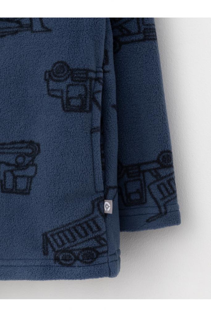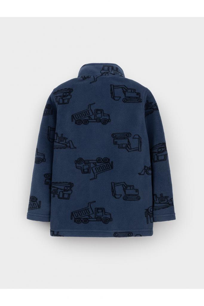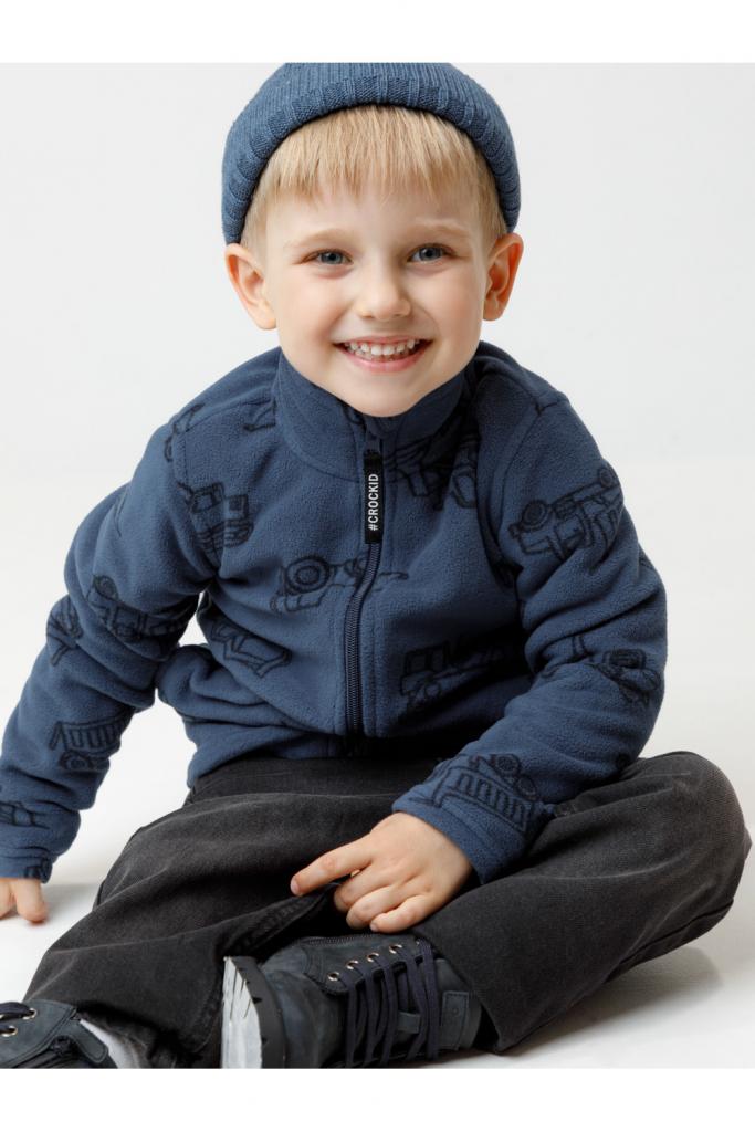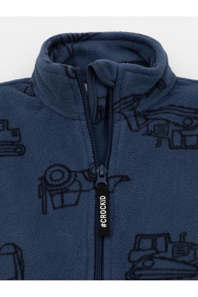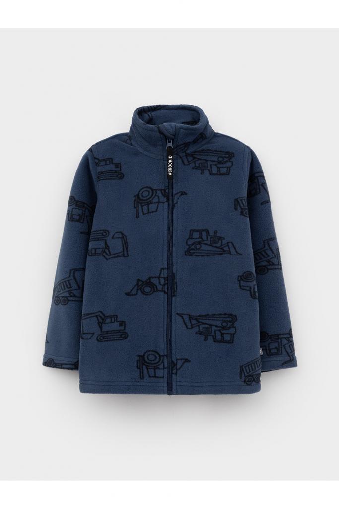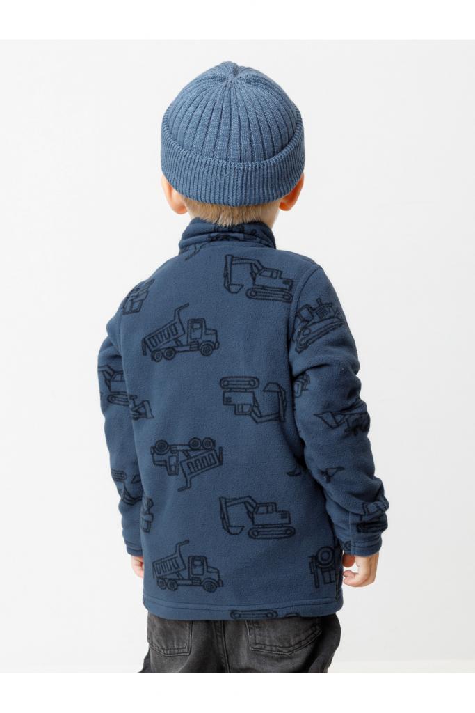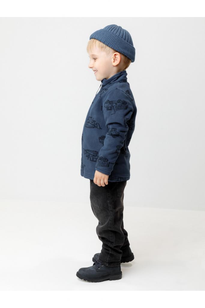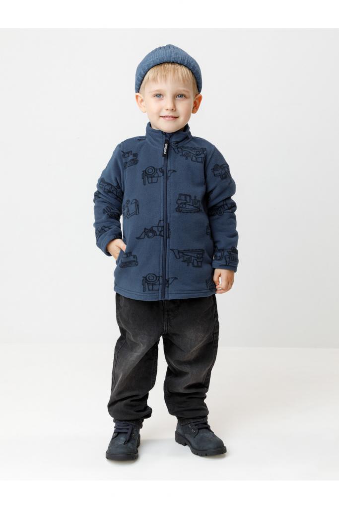 Флисовая куртка для мальчика. У изделия высокий воротник и застёжка на молнию с мягкой защитой шеи и подбородка. По бокам два кармана. Оригинальная набивка выполнена из стойких гипоаллергенных текстильных красителей. Куртка сохраняет цвет и форму после многократных стирок.