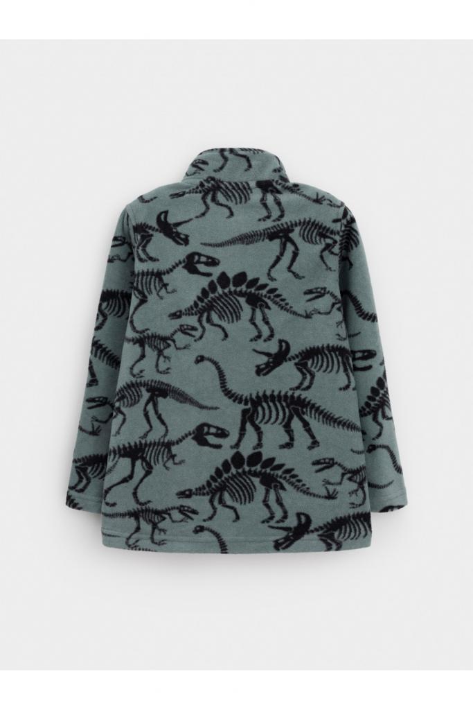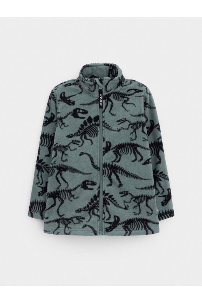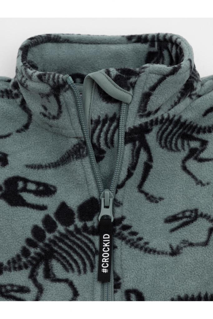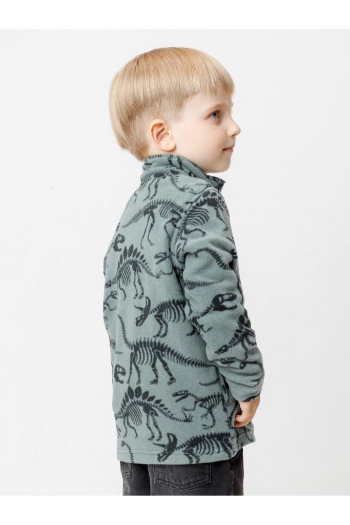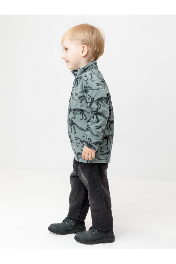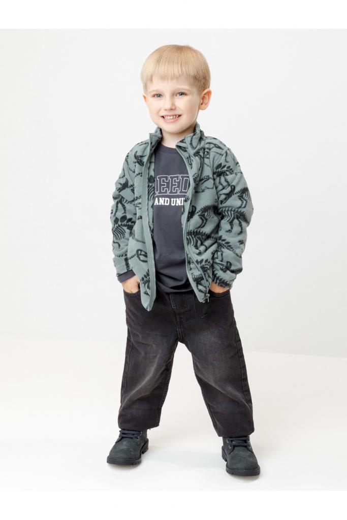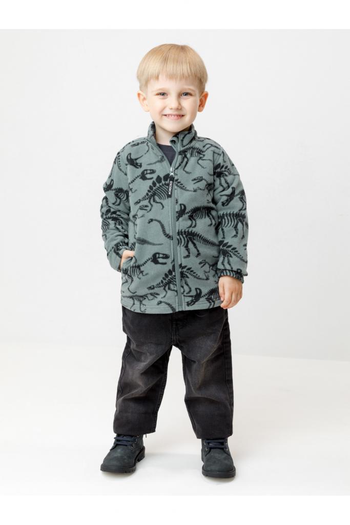 Флисовая куртка для мальчика. У изделия высокий воротник и застёжка на молнию с мягкой защитой шеи и подбородка. По бокам два кармана. Оригинальная набивка выполнена из стойких гипоаллергенных текстильных красителей. Куртка сохраняет цвет и форму после многократных стирок.