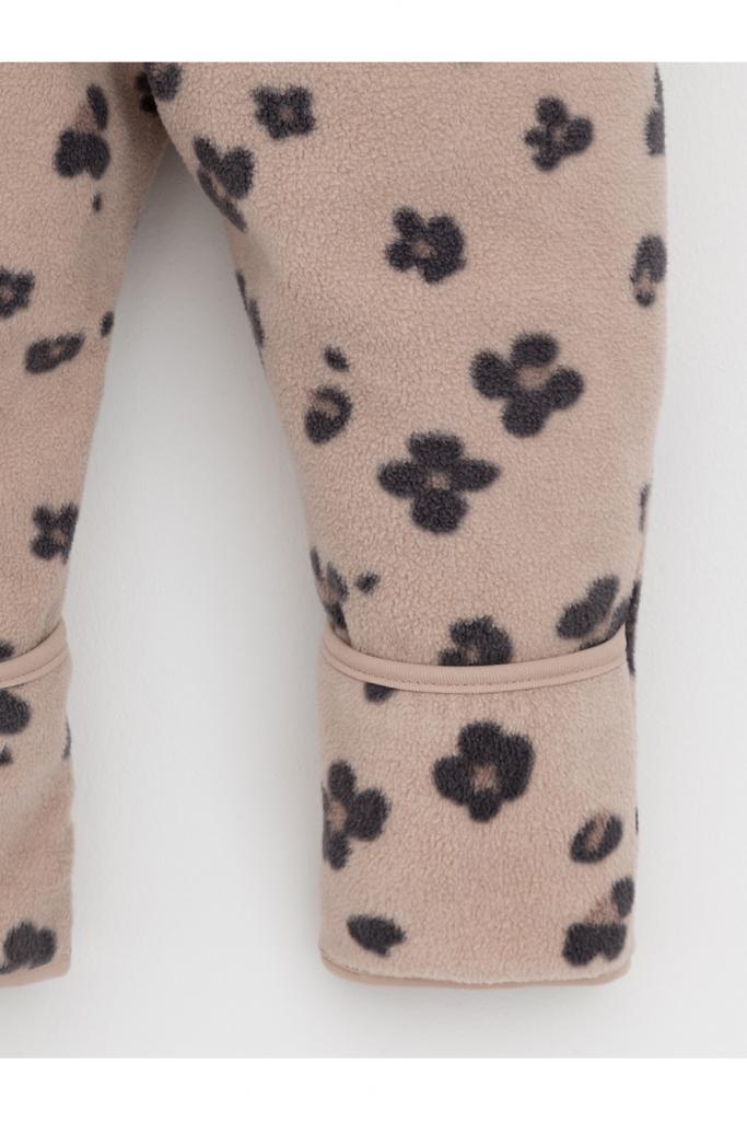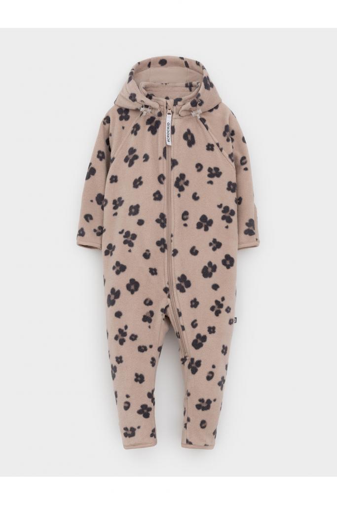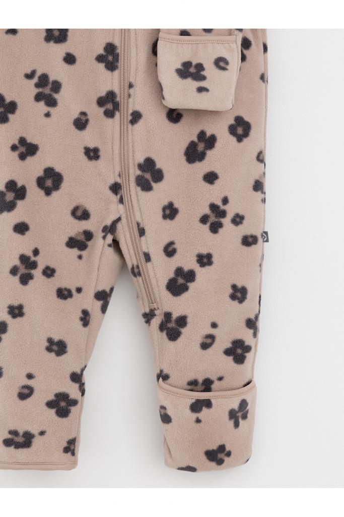 Флисовый комбинезон для девочки со съёмным капюшоном. Капюшон регулируется по ширине с помощью эластичной утяжки со стопперами. Подклад выполнен из гладкого трикотажа супрем, произведённого из высококачественного натурального хлопка. Застёгивается на удлинённую молнию с мягкой защитой шеи и подбородка. В размерах 62, 68 и 74 на рукавах и ножках есть отвороты. Оригинальная набивка выполнена из стойких, гипоаллергенных текстильных красителей. Комбинезон сохраняет цвет и форму после многократных стирок.