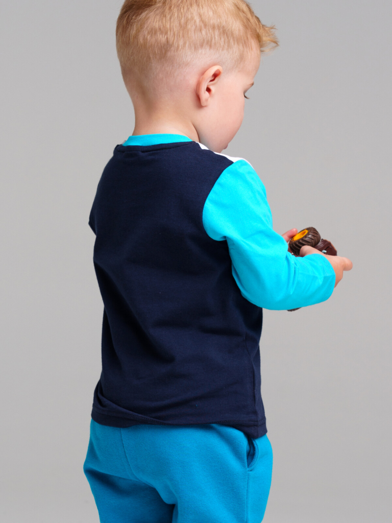 > Фуфайка детская трикотажная для мальчиков (футболка с длинными рукавами) голубой,тёмно-синий,разноцветный