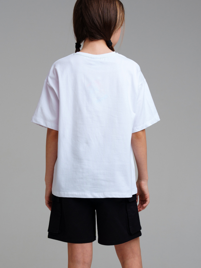 Футболка oversize из качественного и приятного на ощупь трикотажа джерси. Высокое содержание хлопка 95%. Благодаря наличию эластана в составе ткани изделие проще в уходе и держит форму.