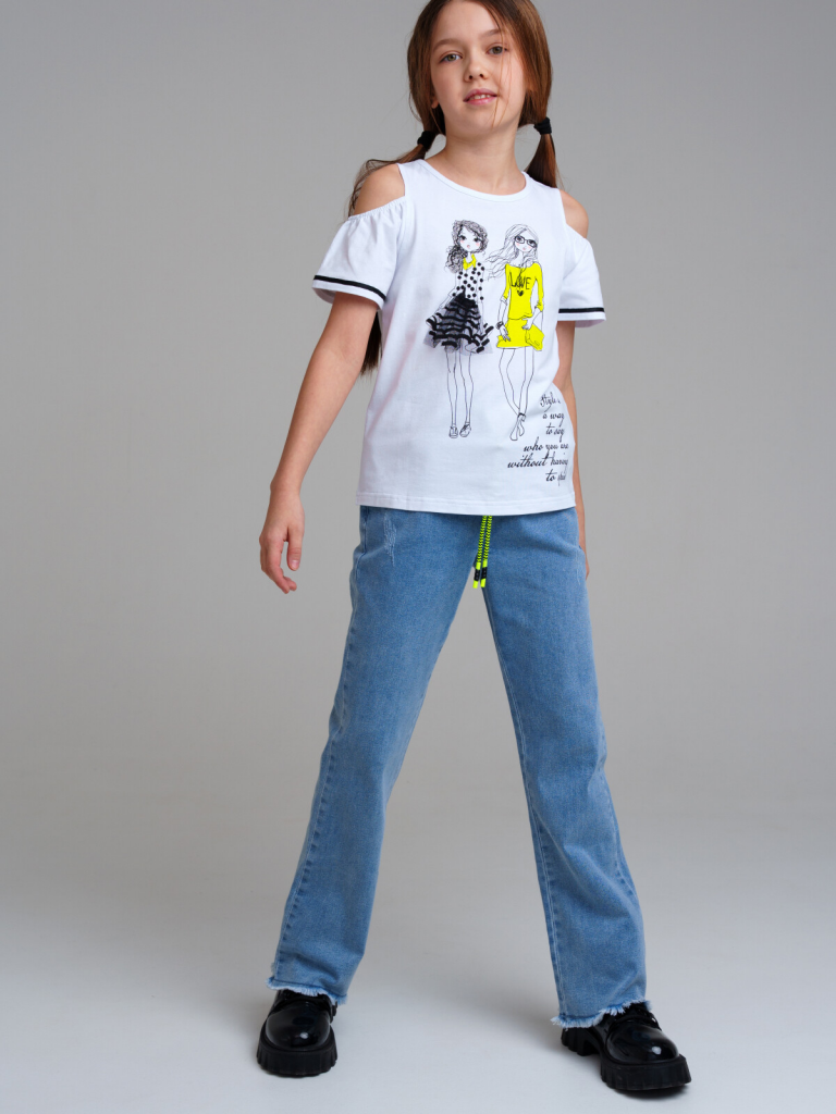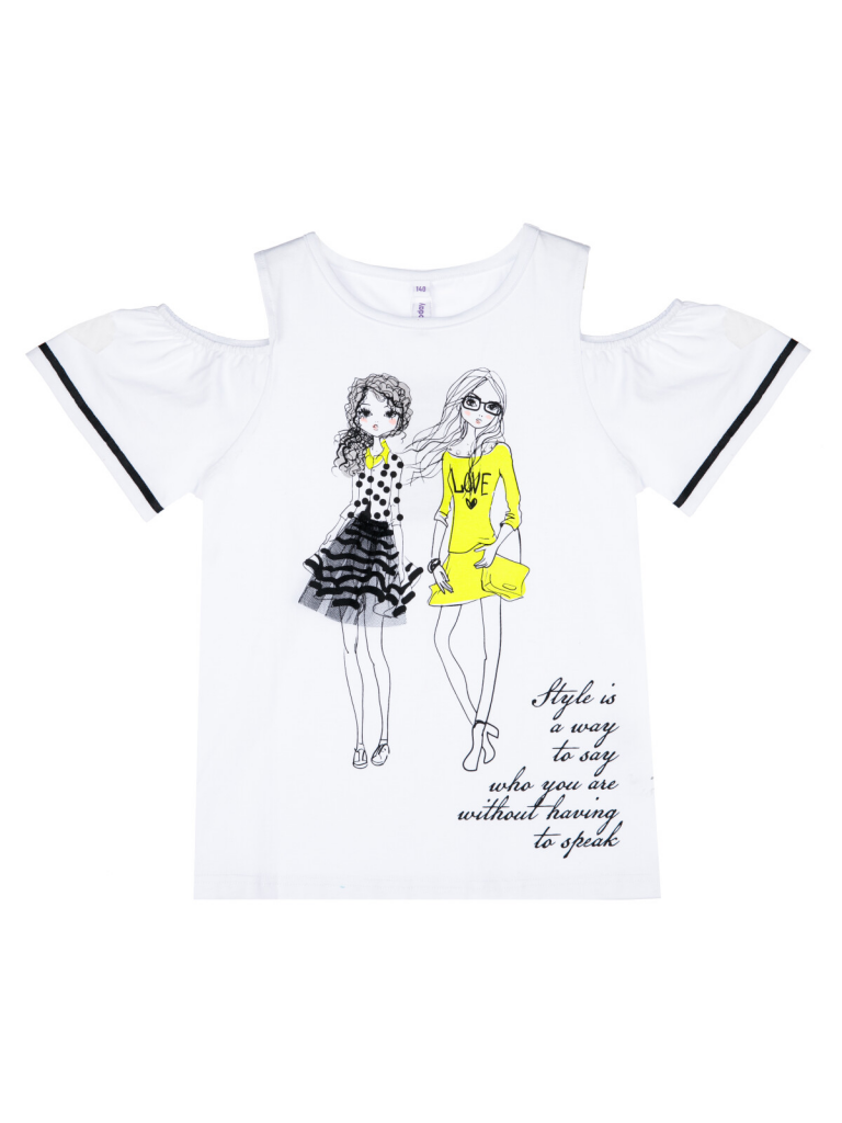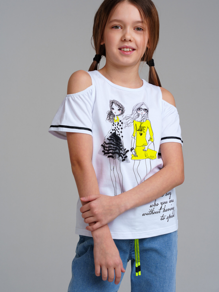 > Фуфайка трикотажная для девочек (футболка) белый,разноцветный