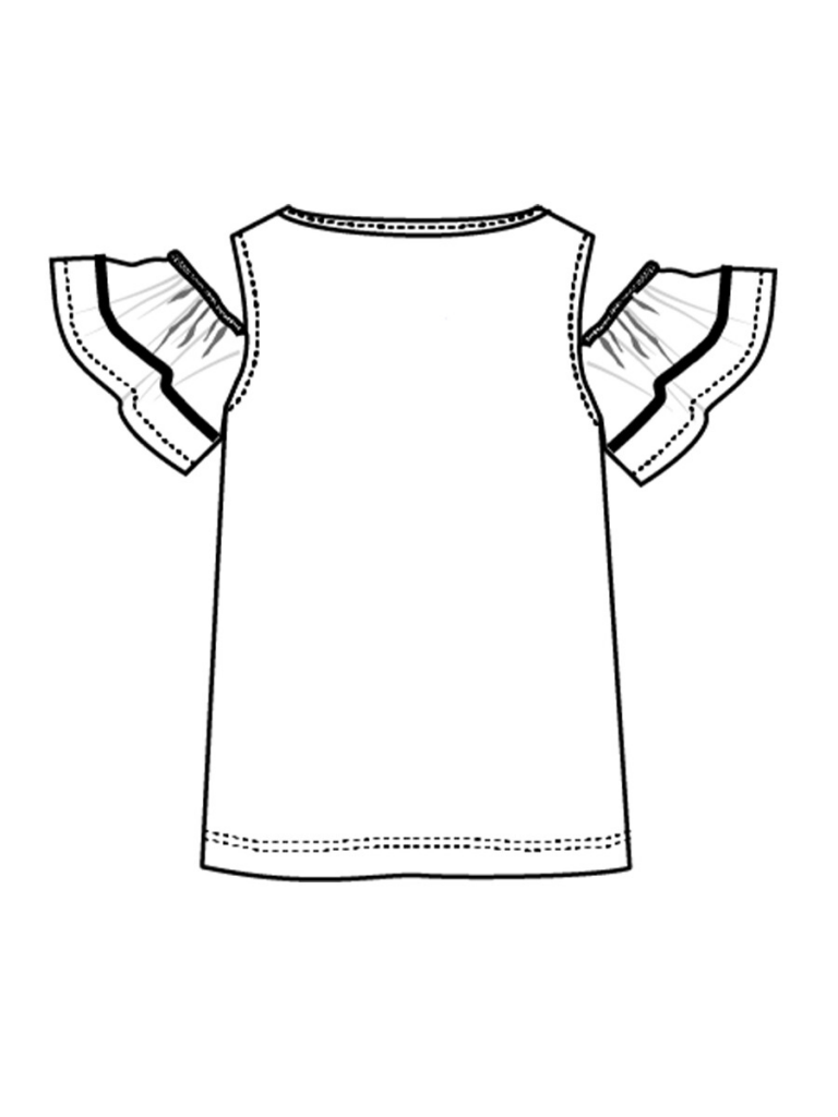 Футболка с открытыми плечами из качественного и приятного на ощупь трикотажа джерси. Высокое содержание хлопка 95%. Благодаря наличию эластана в составе ткани изделие проще в уходе и держит форму. Regular fit.