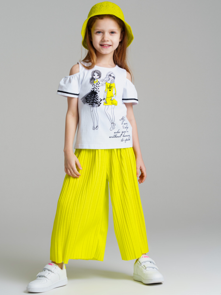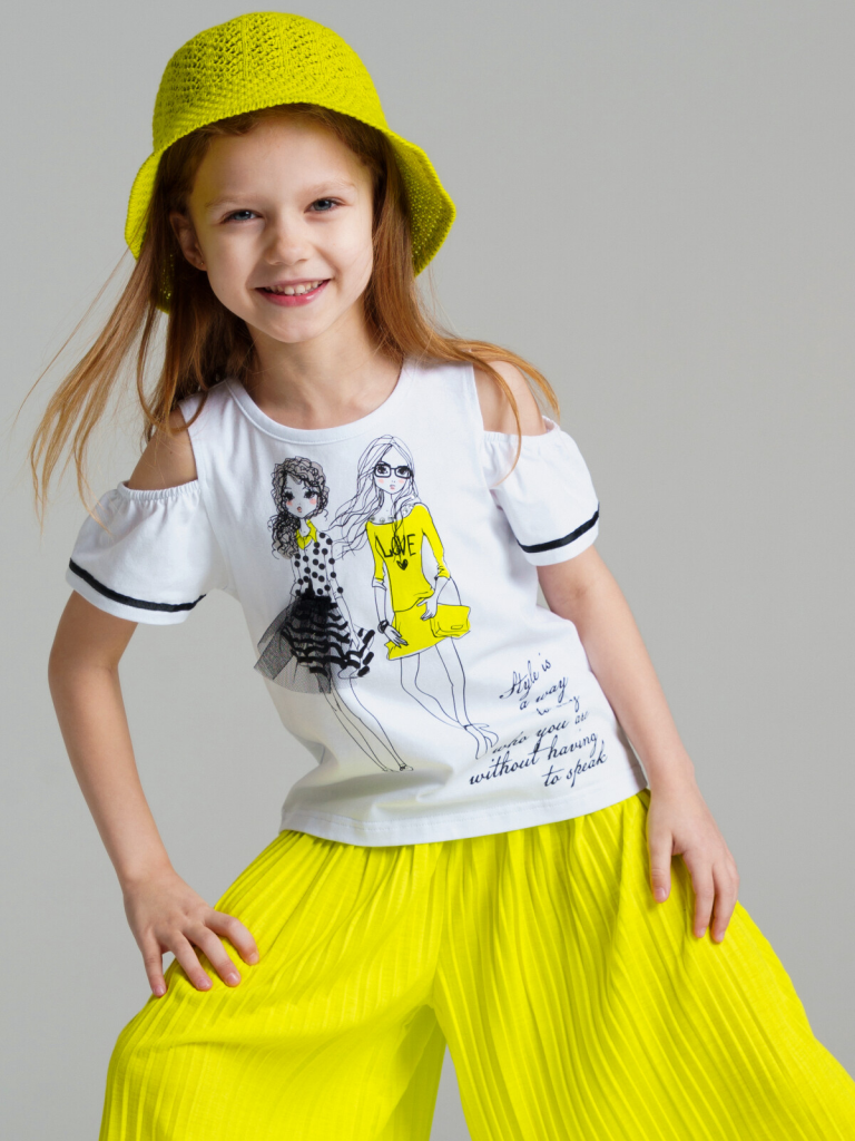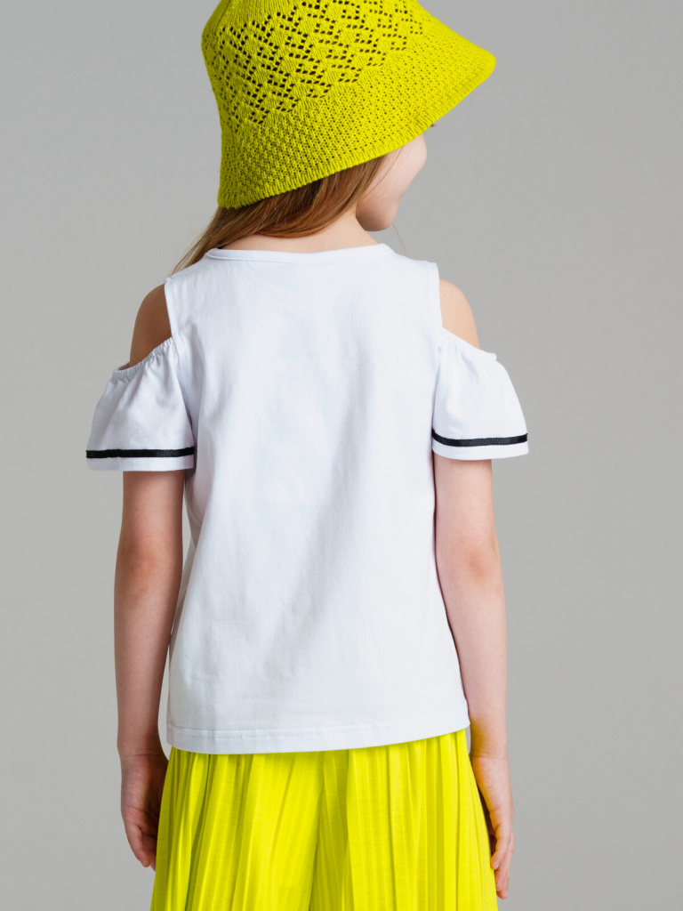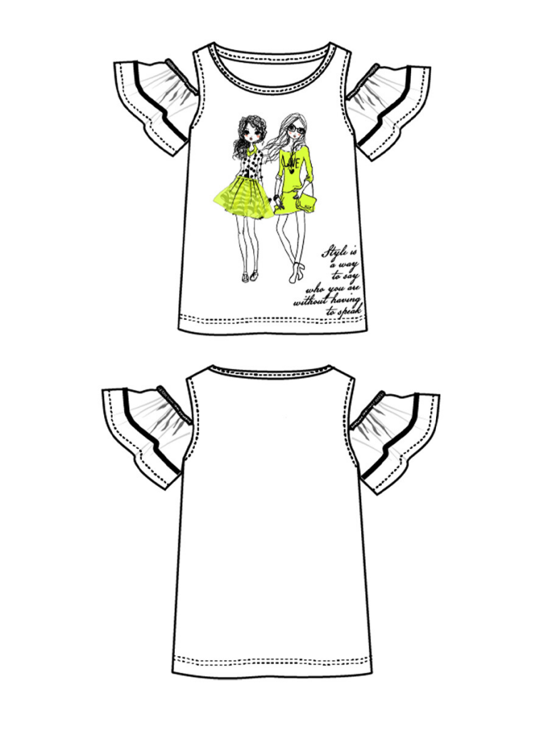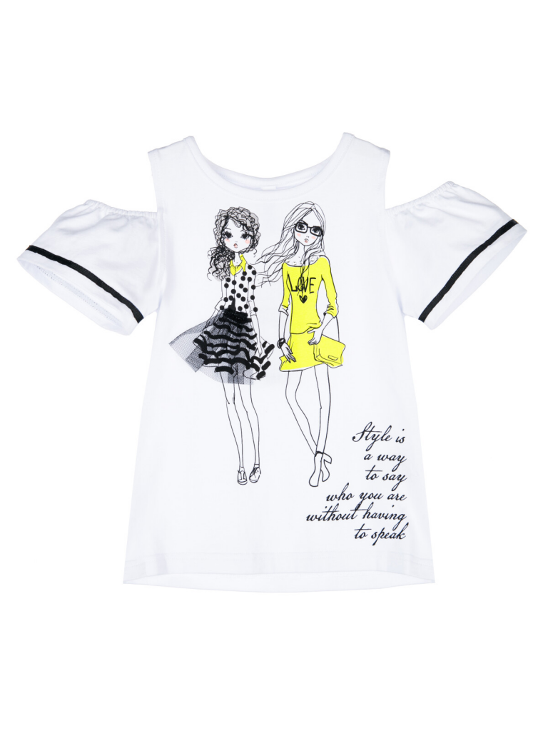 > Фуфайка трикотажная для девочек (футболка) белый,разноцветный