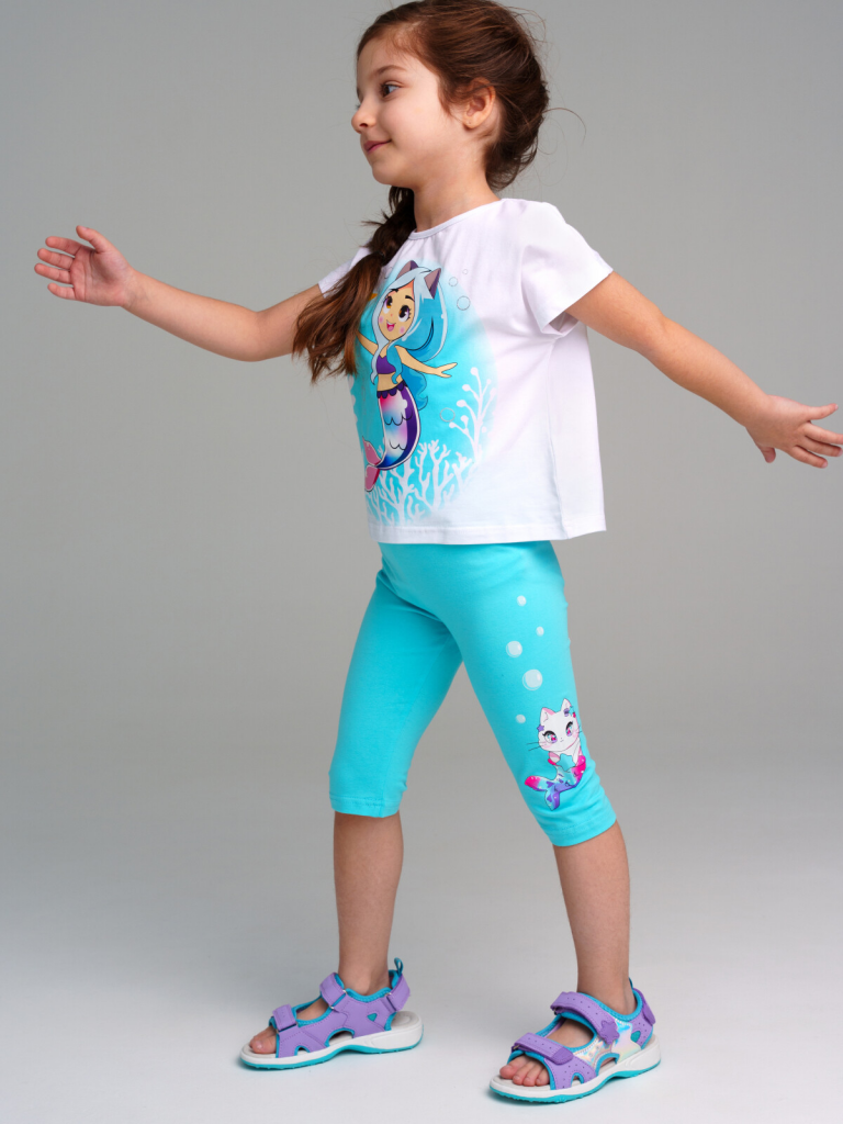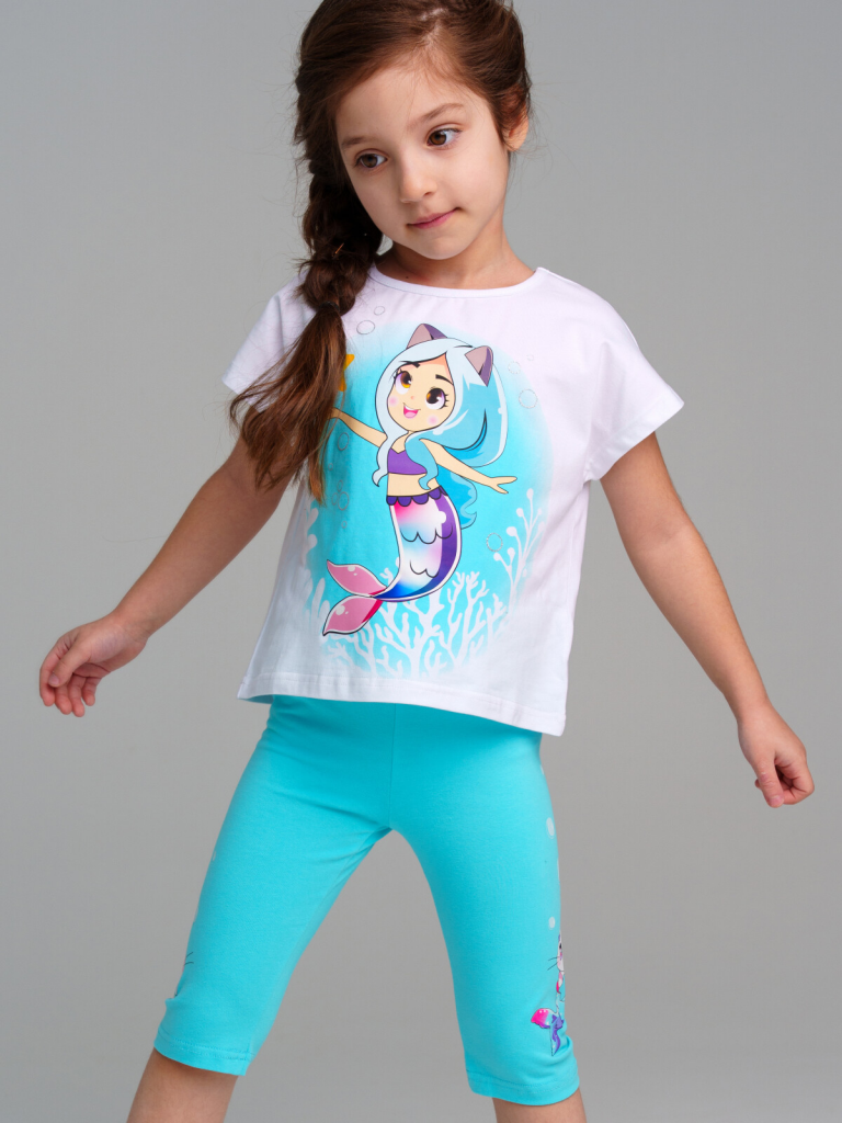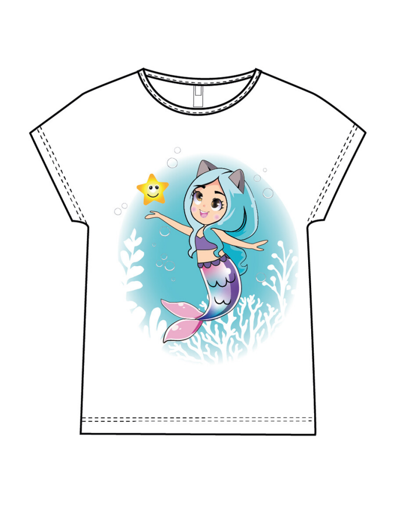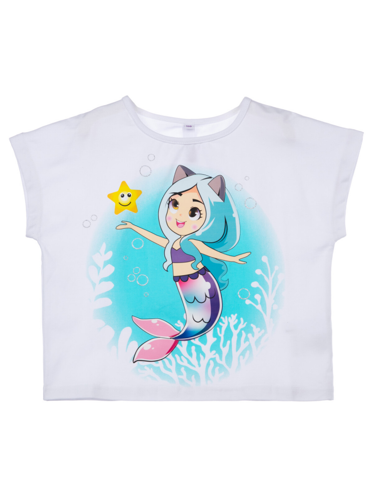 > Фуфайка трикотажная для девочек (футболка) белый,разноцветный