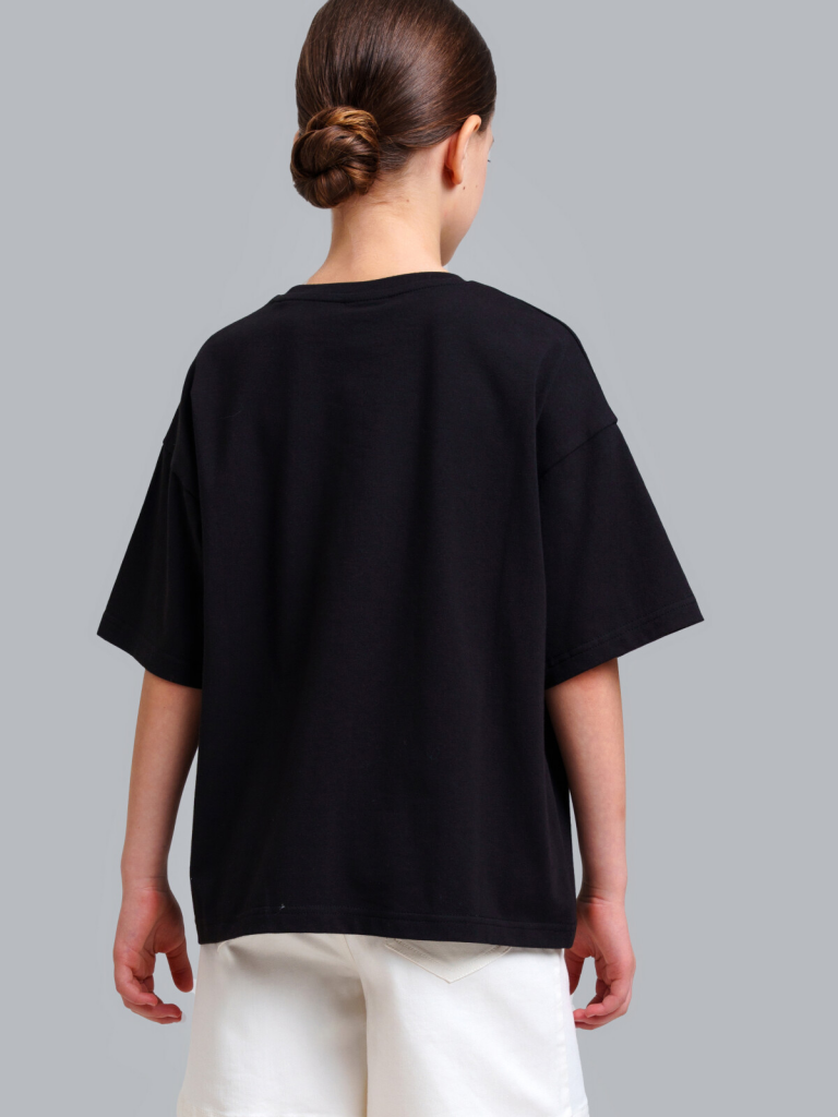 > Фуфайка трикотажная для девочек (футболка) черный