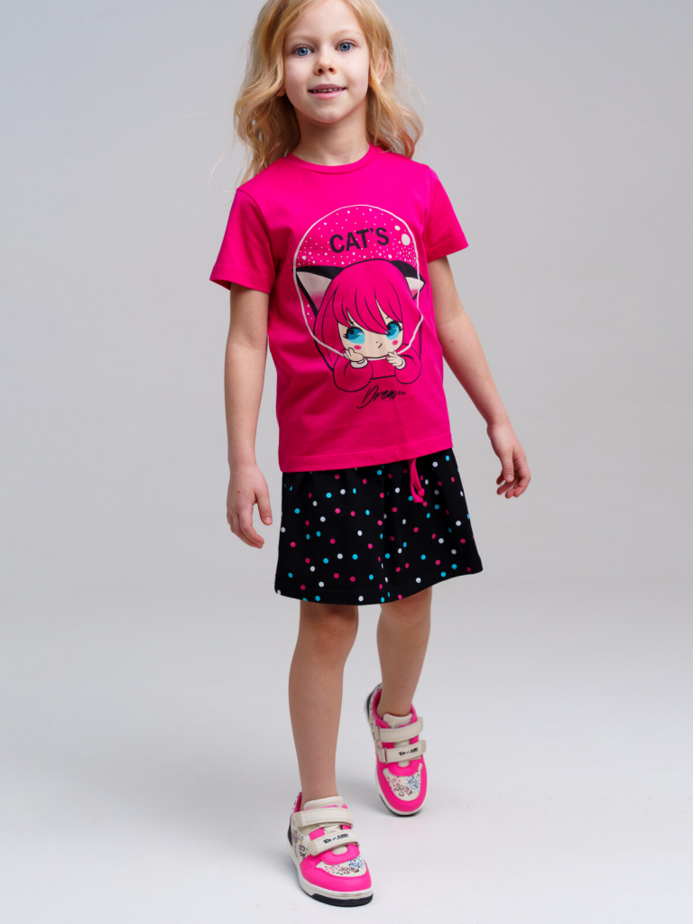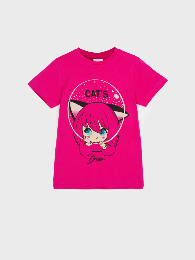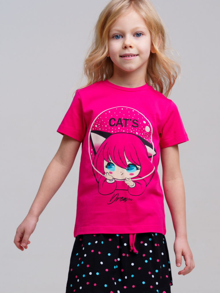 > Фуфайка трикотажная для девочек (футболка) фуксия