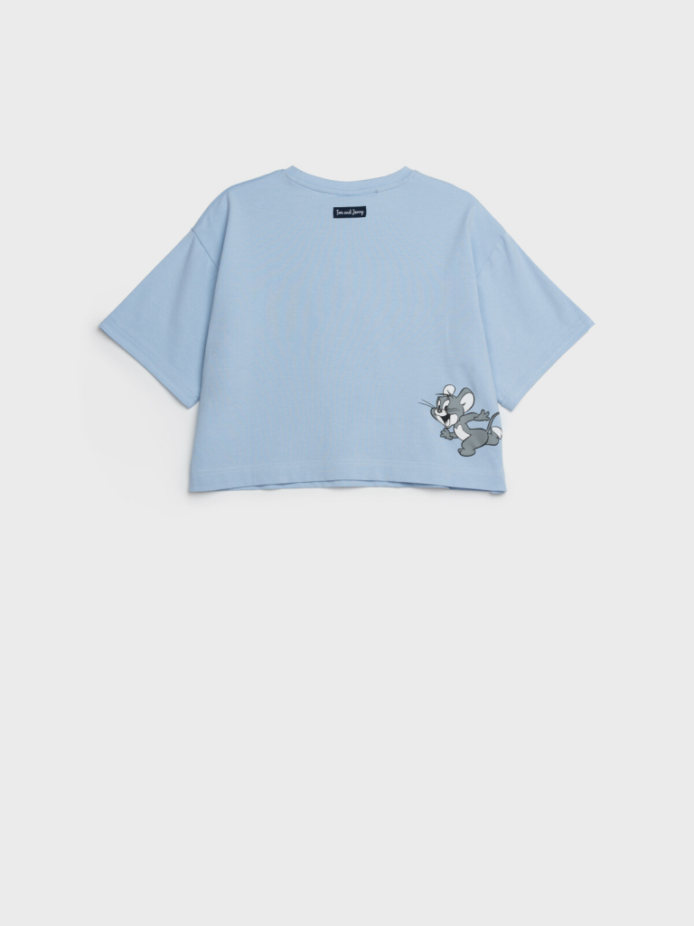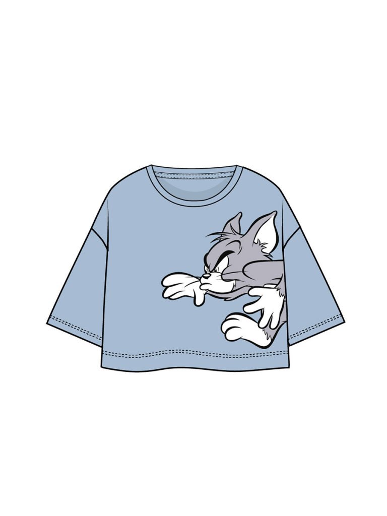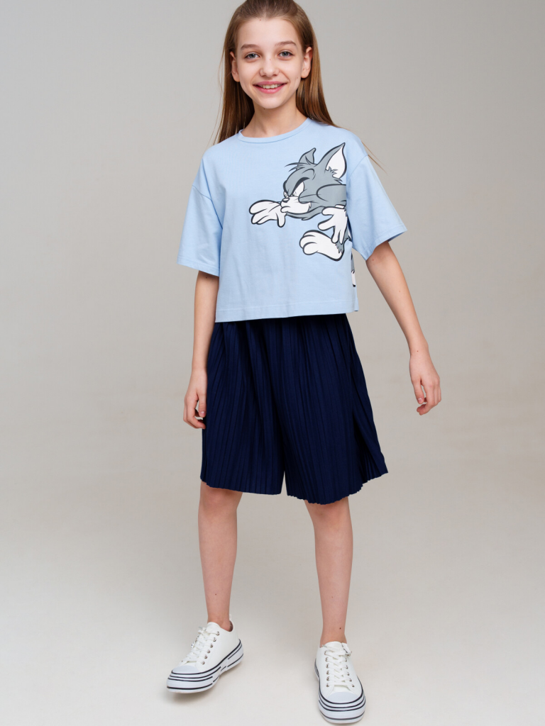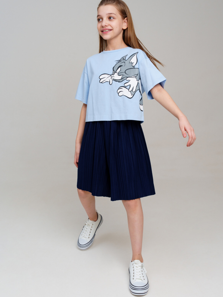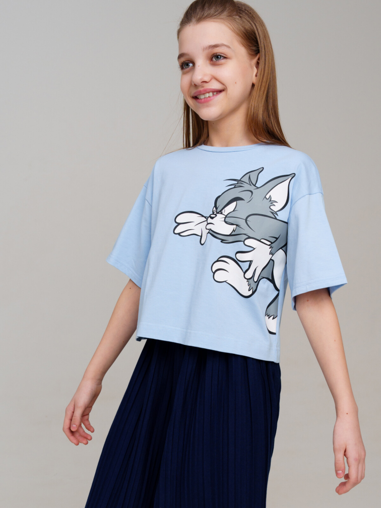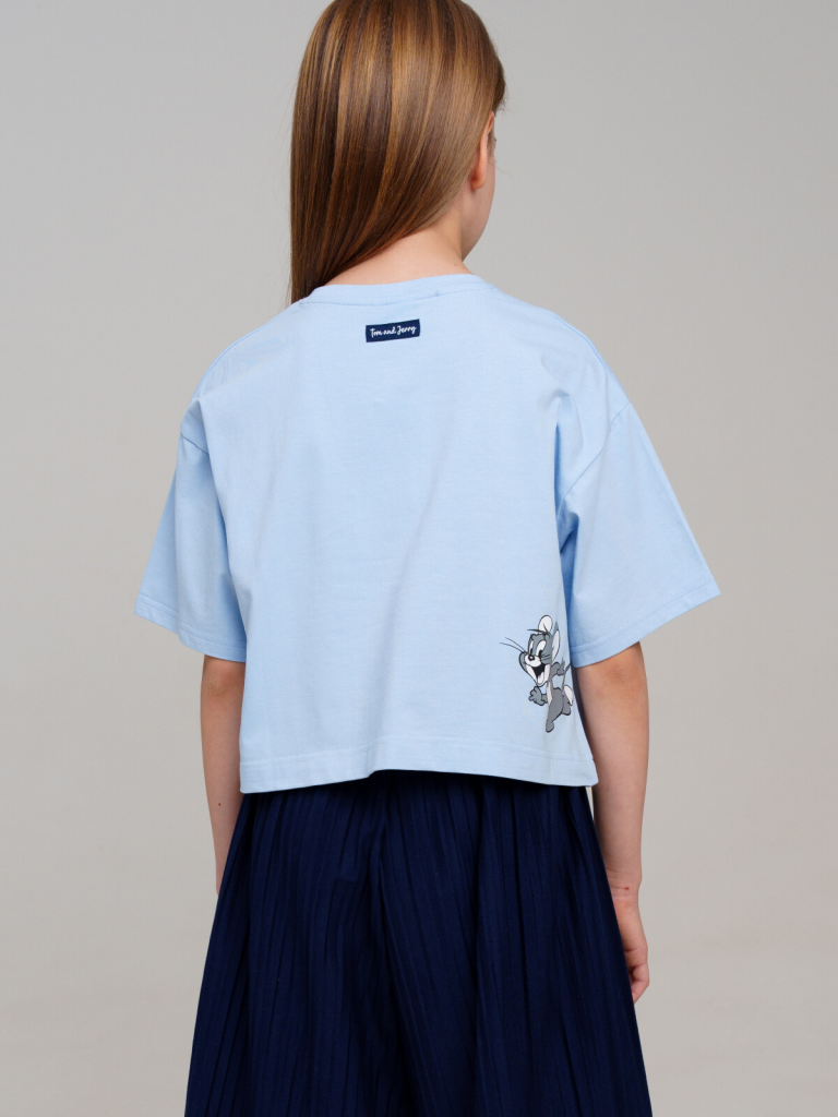 > Фуфайка трикотажная для девочек (футболка) голубой