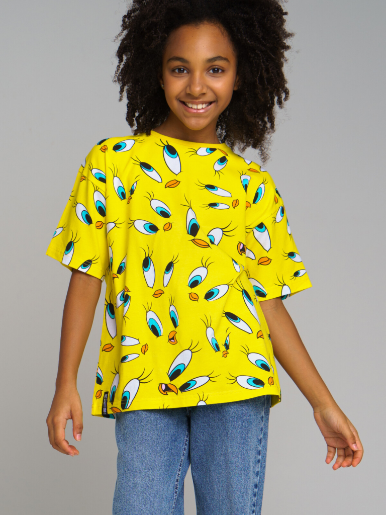 > Фуфайка трикотажная для девочек (футболка) разноцветный