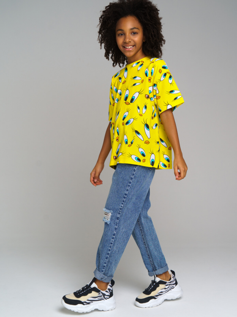 Футболка oversize из качественного и приятного на ощупь трикотажа джерси. Высокое содержание хлопка 95%. Благодаря наличию эластана в составе ткани изделие проще в уходе и держит форму.
