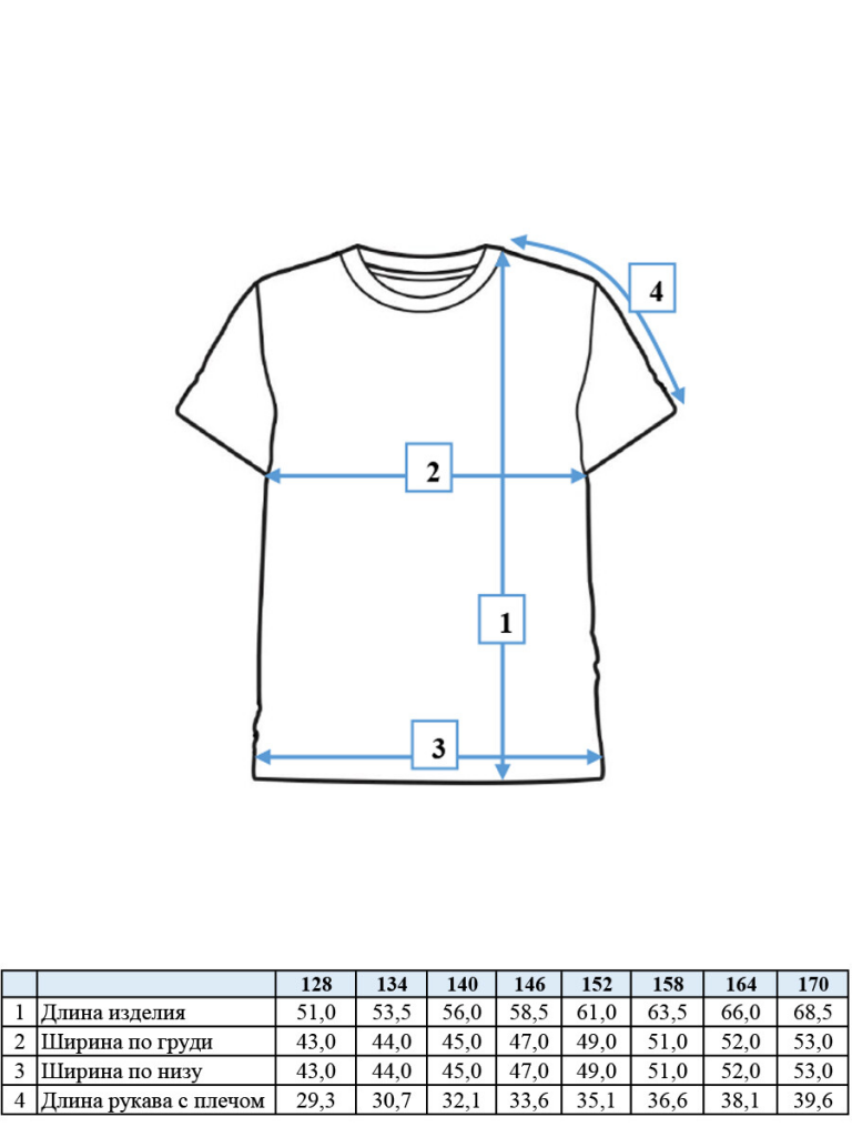 | Рост, см | 98 | 104 | 110 | 116 | 122 | 128 | 134 | 140 | 146 | 152 | 158 | 164 | 170 |