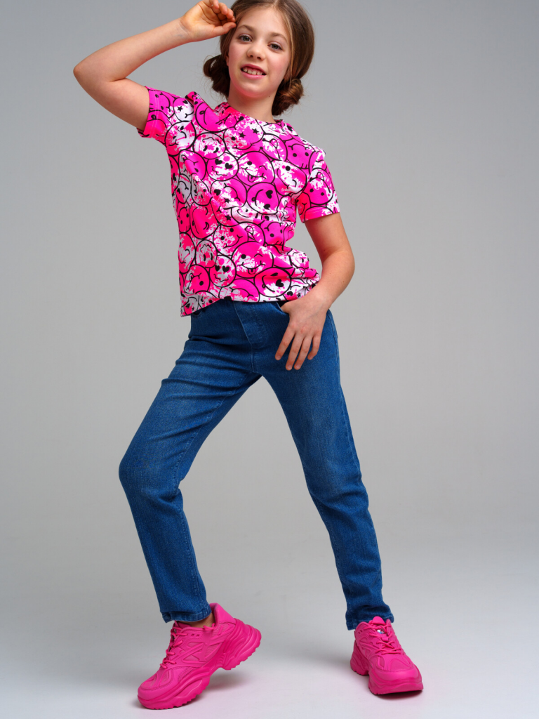 > Фуфайка трикотажная для девочек (футболка) разноцветный
