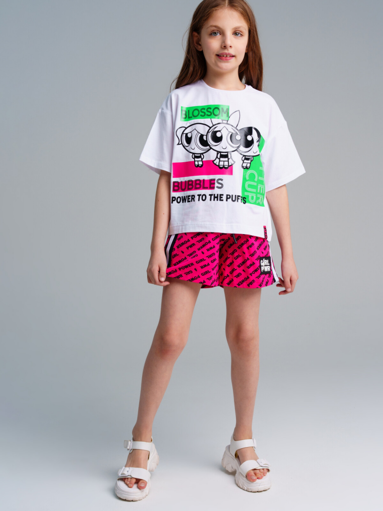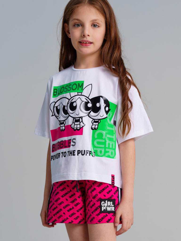> Фуфайка трикотажная для девочек (футболка) разноцветный,белый