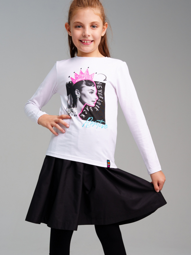 > Фуфайка трикотажная для девочек (футболка с длинными рукавами) белый